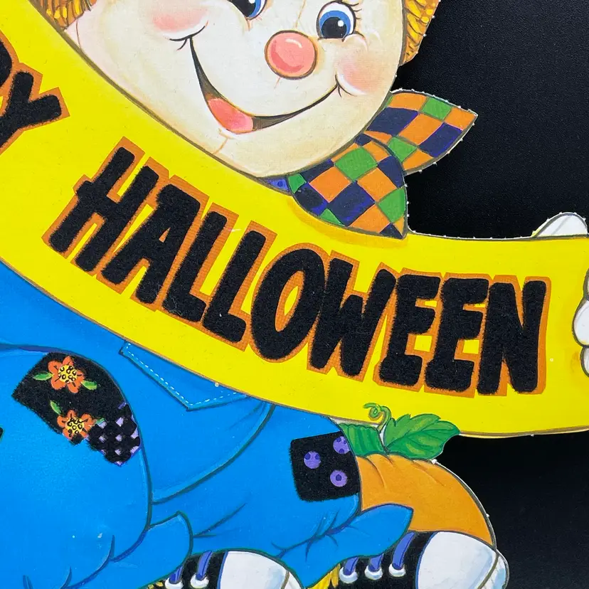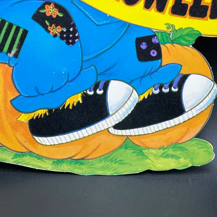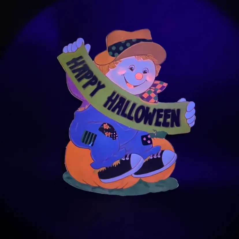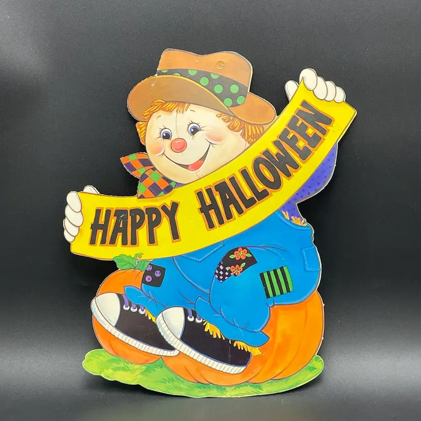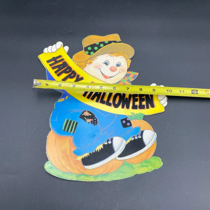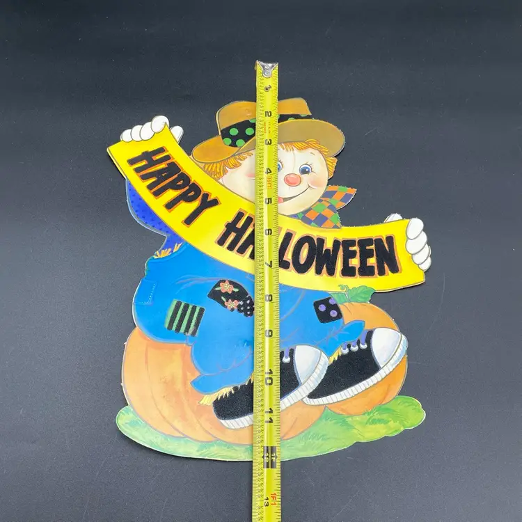 Halloween Die Cut Scarecrow Pumpkin Double Sided Ephemera Flocked Glows