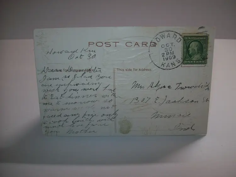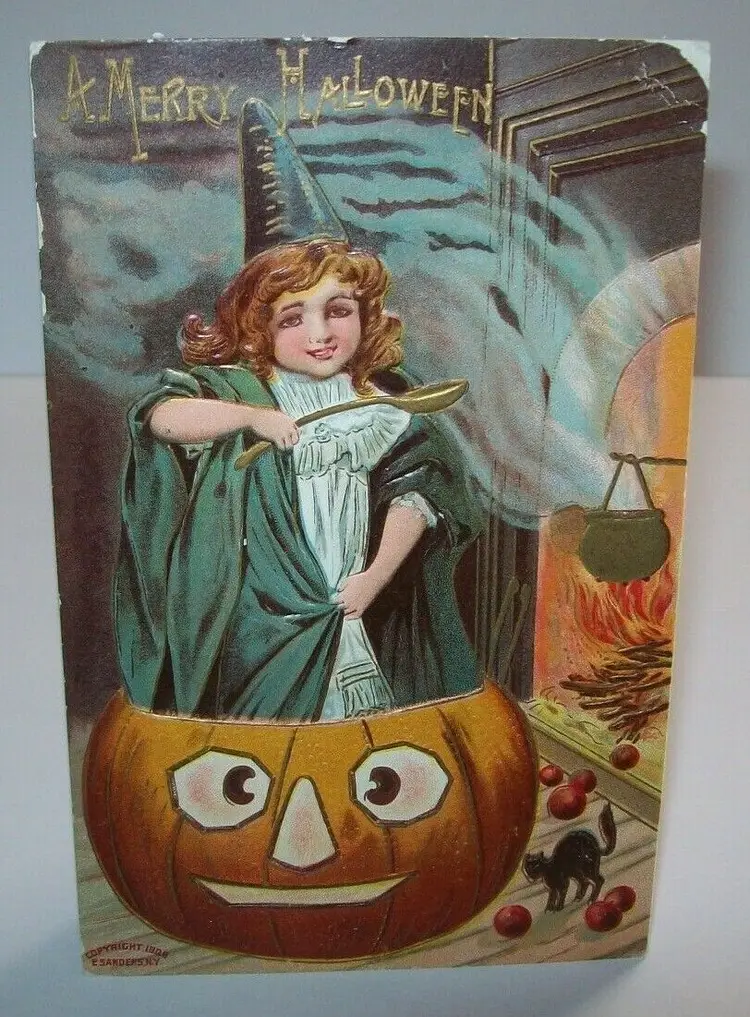 Unit of Sale: Single Unit Era: Pre-War (Pre-1914) Original/Licensed Reprint: Original Occasion: Halloween Postage Condition: Yes Subject: Artist Material: Paper Theme: Fantasy, Art, Holiday, Greetings Time Period Manufactured: 1900-1919 Type: Printed (Lithograph) Features: Divided Back, Embossed Brand/Publisher: Unknown Artist: Unknown Custom Bundle: No Size: Standard (5.5 x 3.5 in) Number of Items in Set: 1 Country/Region of Manufacture: Unknown Year Manufactured: 1909 Antique: Halloween Vintage: Halloween Postcard Original: Postcard