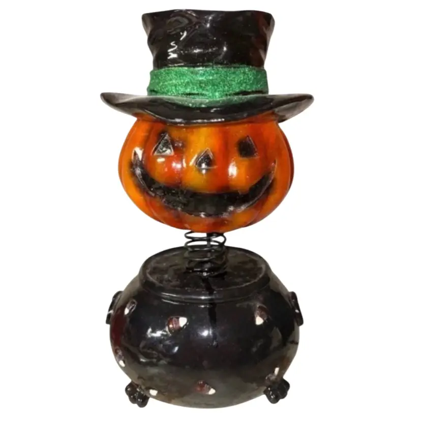 Halloween Fiberglass Bobblehead Jack O Lantern Pumpkin Lamp 12” Comes in original box from target Really really good condition!