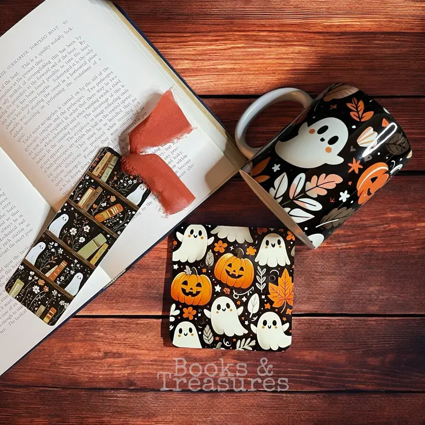 Get into the spooky spirit with this Halloween-themed book lover’s bundle! This set includes a charming ghost mug, a coordinating spooky ghost and bookshelf bookmark with a cozy fabric tassel, and an adorable ghost and pumpkin coaster. Perfect for cozy autumn reading sessions or as a unique gift for the Halloween and book lover in your life!
