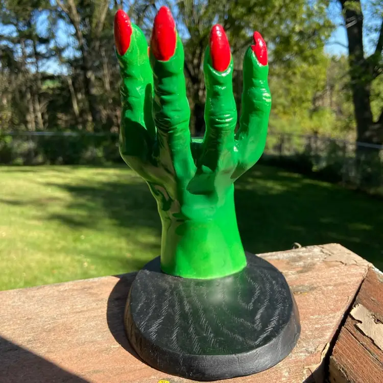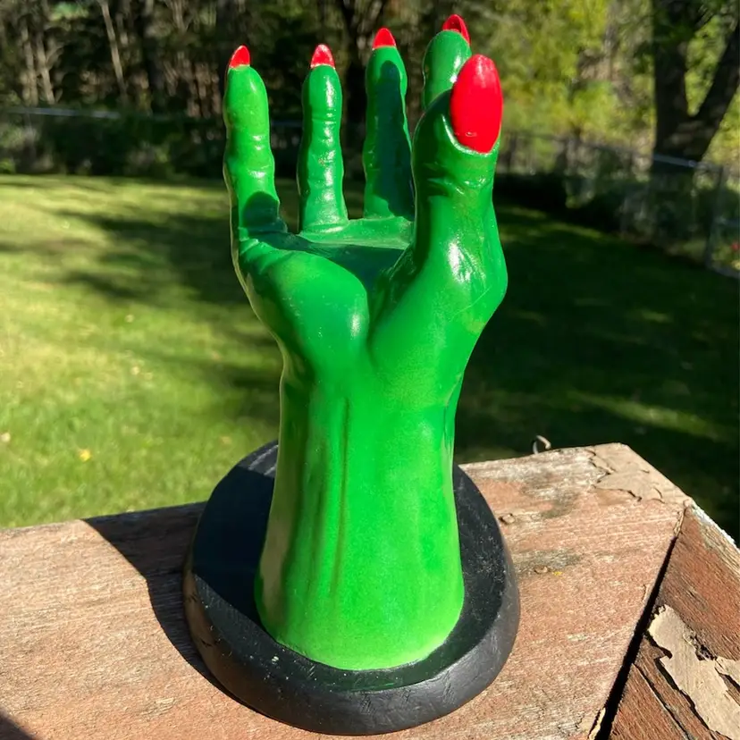 Base is approx: 4.5”w x 6”l x .5”h. Entire piece is 7”h.