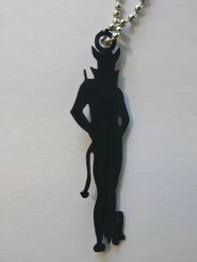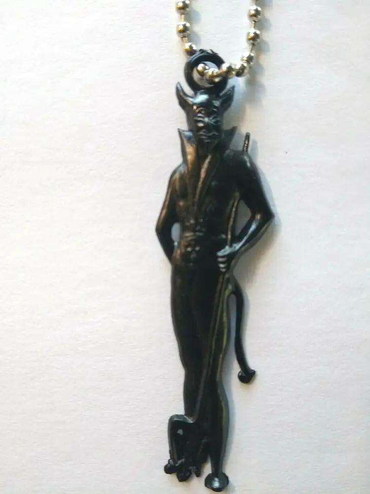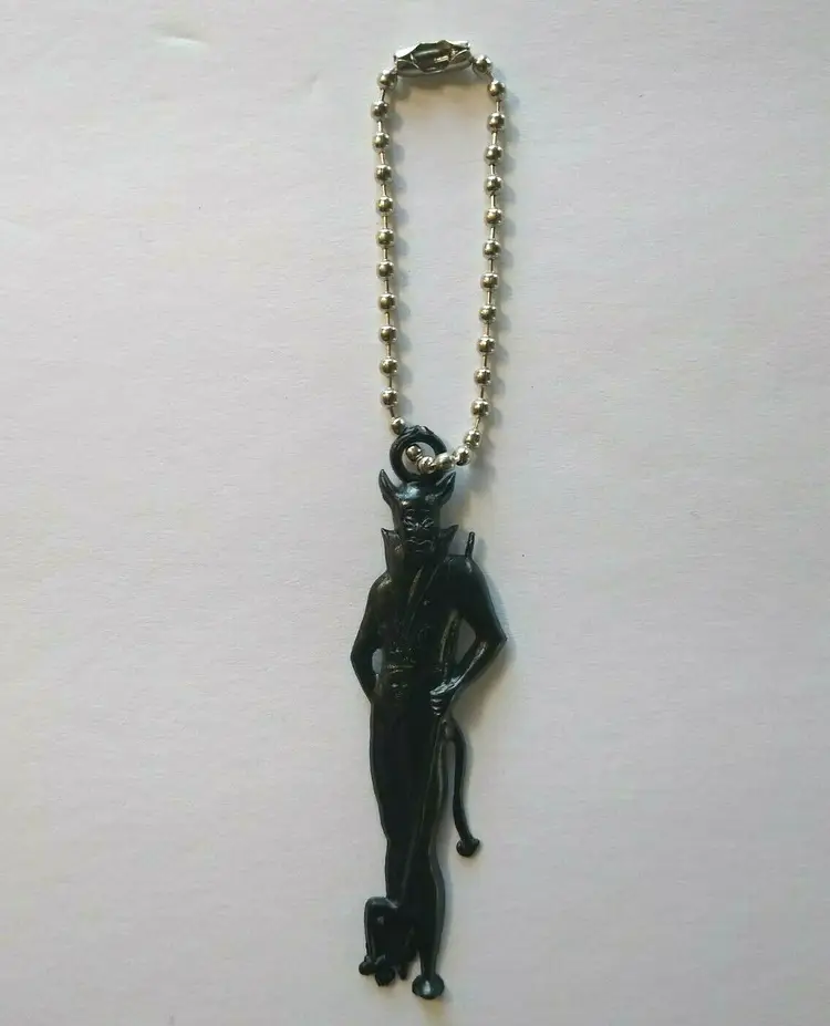 Vintage plastic black Halloween Devil key chain. Size is 2.5". Includes silver chain.