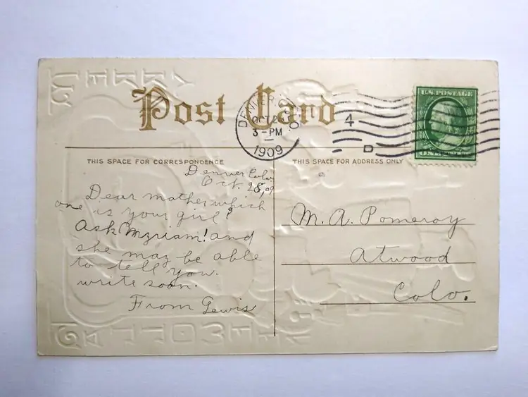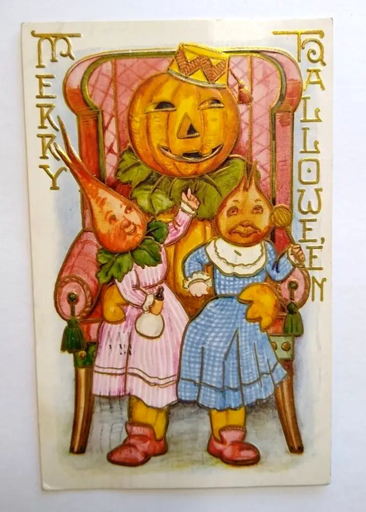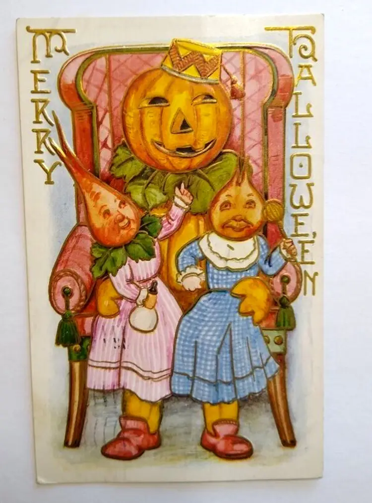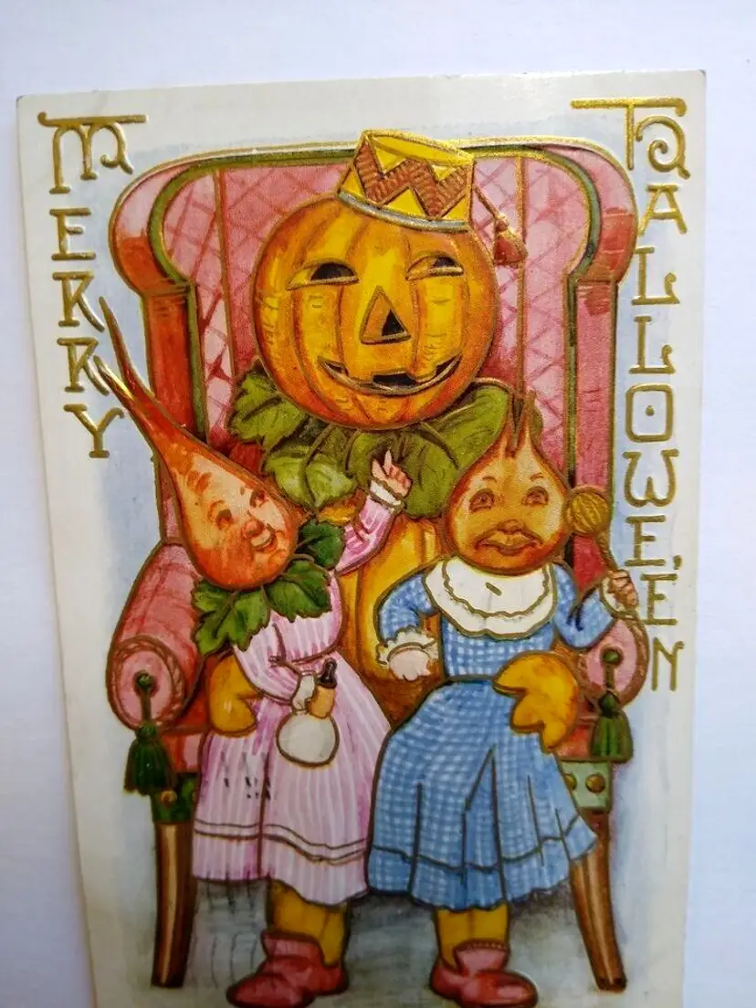 Unit of Sale: Single Unit Artist: Unknown Number of Items in Set: 1 Antique: Halloween Occasion: Halloween Signed: No Size: Standard (5.5 x 3.5 in) Material: Paper Year Manufactured: 1909 Original/Licensed Reprint: Original Brand/Publisher: Unbranded Subject: Fantasy Vintage: Halloween Postcard Personalize: No Type: Printed (Lithograph) Era: Pre-War (Pre-1914) Theme: Anthropomorphic, Art, Beets, Fantasy, Goblin, Greetings, Holiday, Vegtables Features: Divided Back, Embossed Time Period Manufactured: 1900-1919 Country/Region of Manufacture: Unknown Postage Condition: Yes Original: Postcard
