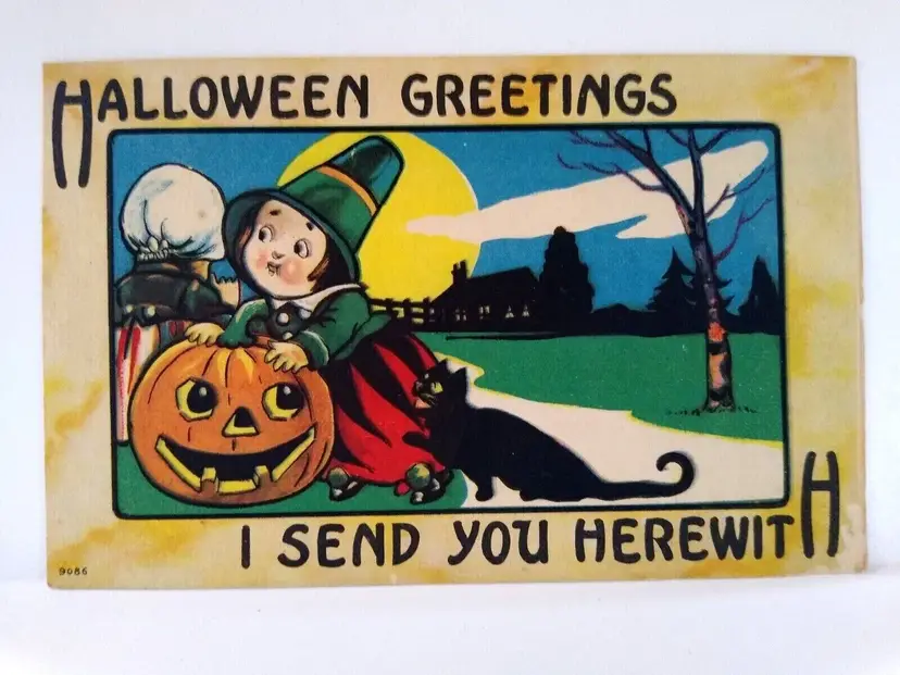 Size: Standard (5.5 x 3.5 in) Custom Bundle: No Personalize: No Type: Printed (Lithograph) Year Manufactured: 1913 Number of Items in Set: 1 Signed: No Original/Licensed Reprint: Original Occasion: Halloween Time Period Manufactured: 1900-1919 Unit of Sale: Single Unit Era: Pre-War (Pre-1914) Artist: Unknown Country/Region of Manufacture: United States Material: Paper Theme: Witch, Moon, Pumpkin, JOL, Animals, Art, Children & Infants, Fantasy, Greetings, Holiday, Black Cat Features: Divided Back, Embossed Subject: Fantasy Postage Condition: Unposted Brand/Publisher: Bergman Franchise: Bergman Antique: Halloween Vintage: Halloween Postcard Original: Postcard
