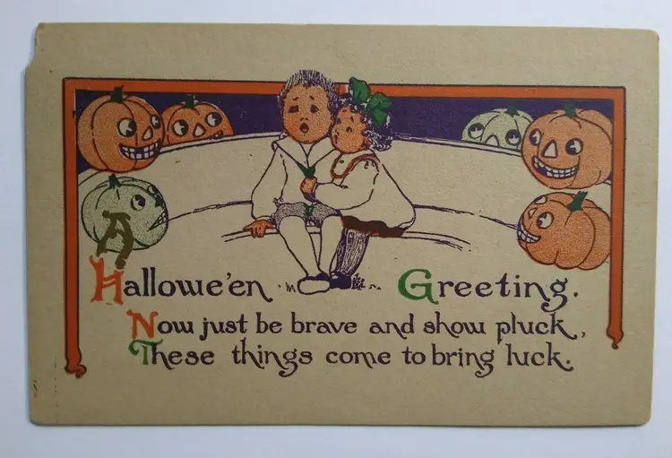 Size: Standard (5.5x3.5 in) Country/Region of Manufacture: Unknown Material: Paper Theme: Art, Fantasy, Greetings, Holiday, Pumpkins, JOL Type: Printed (Lithograph) Features: Divided Back, Texture Postage Condition: No Subject: Artist Original/Licensed Reprint: Original Occasion: Halloween Time Period Manufactured: 1900-1919 Unit of Sale: Single Unit Era: Pre-War (Pre-1914) Brand/Publisher: Everett Artist: Unknown Year Manufactured: 1910 Antique: Halloween Vintage: Halloween Postcard Original: Postcard