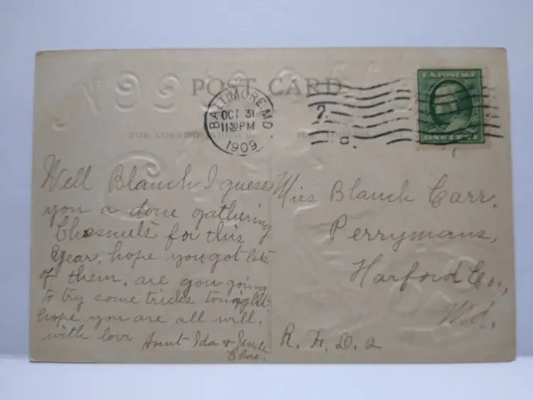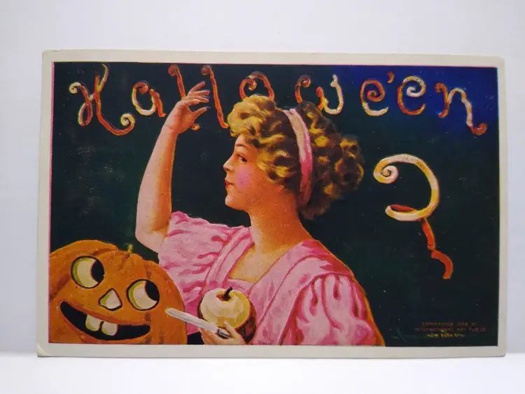 Size: Standard (5.5 x 3.5 in) Artist: Bernhard Wall Country/Region of Manufacture: United States Custom Bundle: No Material: Paper Theme: Goblin, Victorian, JOL, Pumpkin, Apples, Art, Fantasy, Greetings, Holiday, People Personalize: No Type: Printed (Lithograph) Features: Divided Back, Embossed Year Manufactured: 1909 Subject: Anthropomorphic Number of Items in Set: 1 Signed: No Postage Condition: No Original/Licensed Reprint: Original Occasion: Halloween Time Period Manufactured: 1900-1919 Unit of Sale: Single Unit Era: Pre-War (Pre-1914) Brand/Publisher: International Arts Publishing Franchise: International Arts Antique: Halloween Vintage: Halloween Postcard Original: Postcard