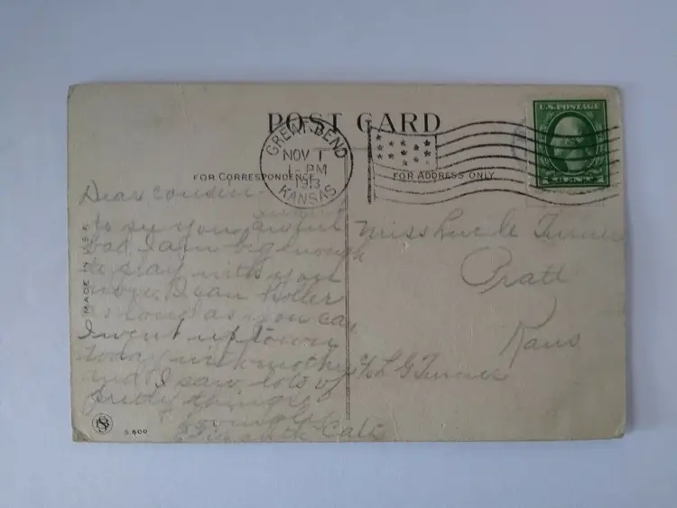 Black and white antique vintage original Halloween postcard. Made by Barton & Spooner. Has light corner creases and edge wear. Posted with circa 1913 Great Bend Kansas ink cancel and old 1 cent postage stamp. Stock #190.