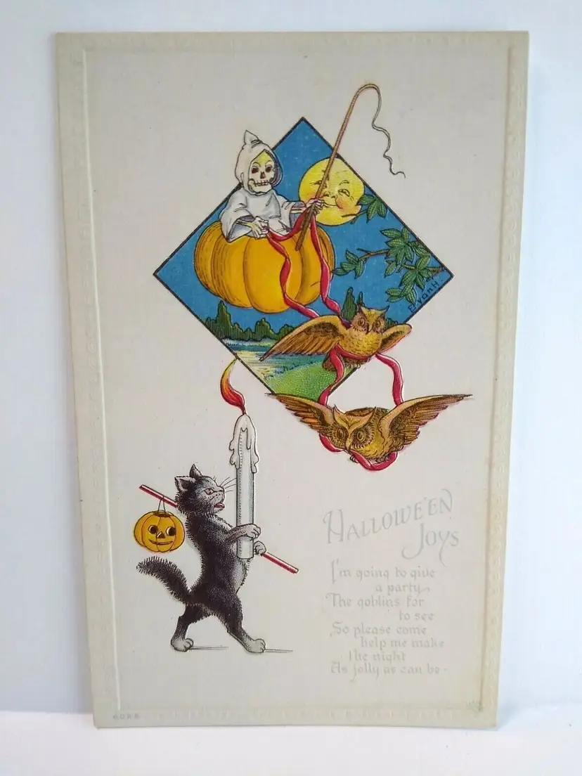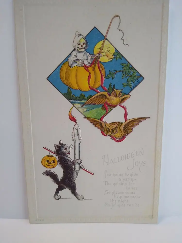 Size: Standard (5.5 x 3.5 in) Artist: E Von H Country/Region of Manufacture: United States Custom Bundle: No Material: Paper Theme: Animals, Art, Fantasy, Greetings, Holiday, Grim Reaper, Death, Black Cat, Owls Type: Printed (Lithograph) Features: Divided Back, Embossed Subject: Skeleton Number of Items in Set: 1 Postage Condition: Unposted Signed: Yes Signed By: E Von H Original/Licensed Reprint: Original Occasion: Halloween Time Period Manufactured: 1900-1919 Unit of Sale: Single Unit Era: Pre-War (Pre-1914) Brand/Publisher: Bergman Year Manufactured: 1910 Antique: Halloween Vintage: Halloween Postcard Original: Postcard