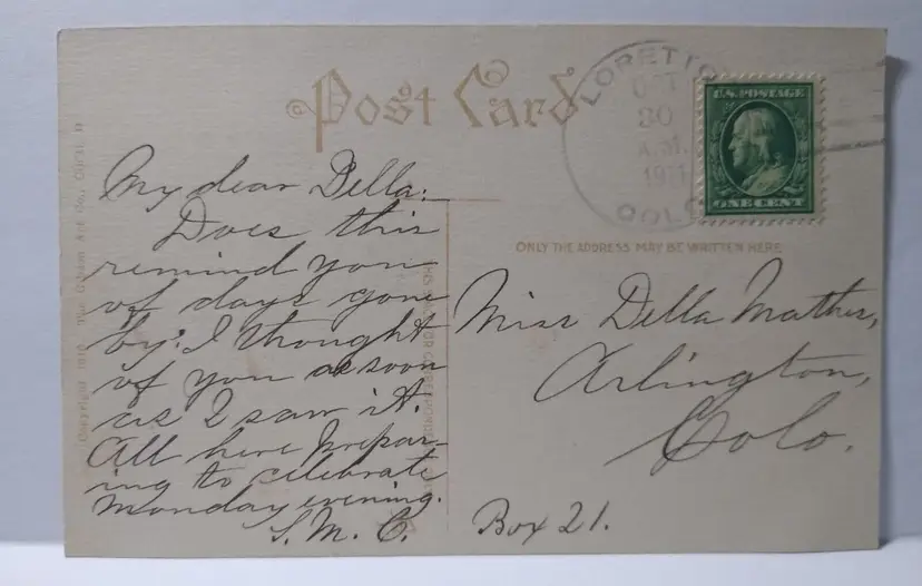 Posted with 1911 cancel. Antique original vintage post card. Has light age wear. Stock #hal427.