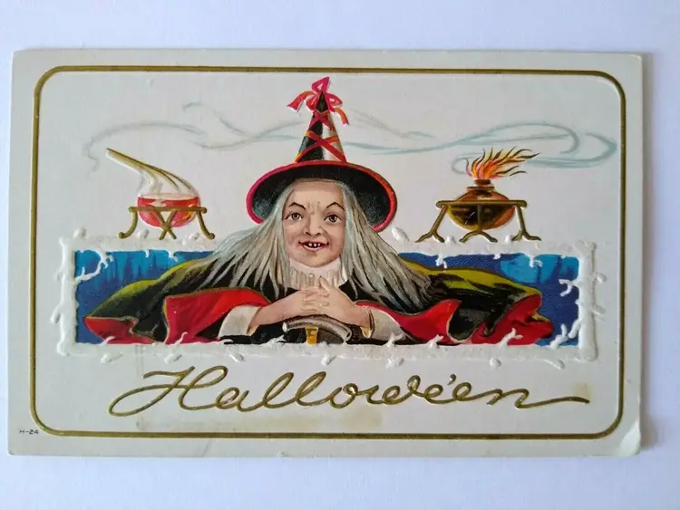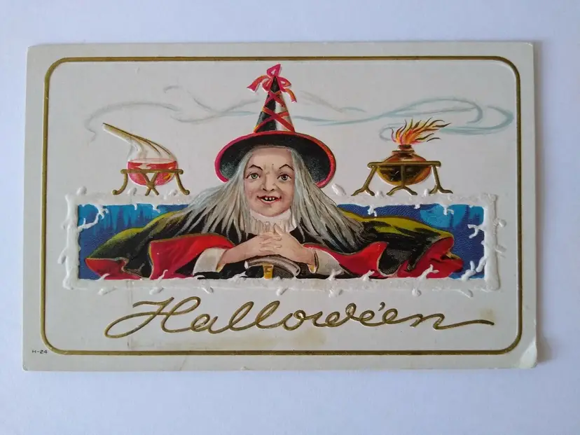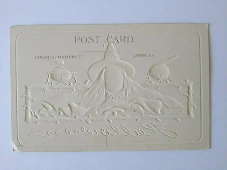 Unit of Sale: Single Unit Era: Pre-War (Pre-1914) Original/Licensed Reprint: Original Occasion: Halloween Postage Condition: No Subject: Fantasy Material: Paper Theme: Fantasy, Art, Holiday, Greetings Time Period Manufactured: 1900-1919 Type: Printed (Lithograph) Features: Divided Back, Embossed Brand/Publisher: Nash Size: Standard (5.5 x 3.5 in) Country/Region of Manufacture: Unknown Number of Items in Set: 1 Artist: Unknown Custom Bundle: No Year Manufactured: 1910 Antique: Halloween Vintage: Halloween Postcard Original: Postcard