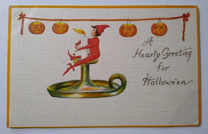 Unit of Sale: Single Unit Artist: Unknown Number of Items in Set: 1 Antique: Halloween Occasion: Halloween Size: Standard (5.5 x 3.5 in) Signed: No Material: Paper Year Manufactured: 1912 Original/Licensed Reprint: Original Brand/Publisher: Leubrie & Elkus Subject: Pixie Vintage: Halloween Postcard Personalize: No Type: Printed (Lithograph) Era: Pre-War (Pre-1914) Theme: Art, Fantasy, Greetings, Holiday, Elf, Pixie, Elves, Candle, Candlestick, JOL, Pumpkins Features: Divided Back, Embossed Time Period Manufactured: 1900-1919 Country/Region of Manufacture: Germany Postage Condition: Yes Original: Postcard