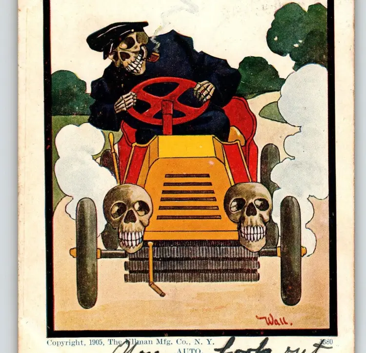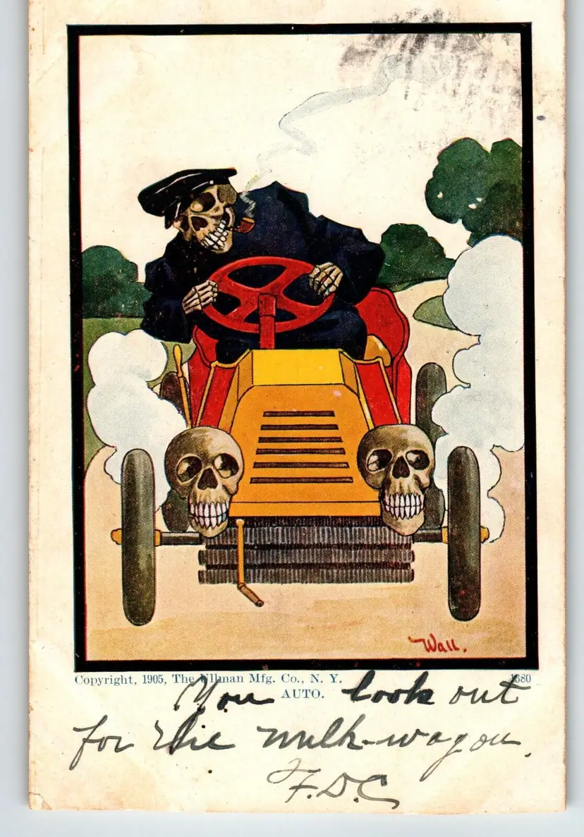 Number of Items in Set: 1 Unit of Sale: Single Unit Artist: Bernhard Wall Signed By: Wall Occasion: Halloween Size: Standard (5.5 x 3.5 in) Signed: Yes Custom Bundle: No Year Manufactured: 1905 Material: Paper Original/Licensed Reprint: Original Franchise: None Brand/Publisher: Ullman Subject: Grim Reaper Vintage: Halloween Postcard Personalize: No Type: Printed (Lithograph) Era: Pre-War (Pre-1914) Theme: Art, Fantasy, Greetings, Holiday, Skeleton, Skulls, Driver, Automobile, Auto, Car, Pipe Features: Undivided Back Time Period Manufactured: 1900-1919 Country/Region of Manufacture: United States Postage Condition: Posted Original: Postcard