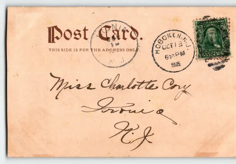 Scarce card. Posted with 1905 cancel. Antique original vintage post card. Has writing on front, spotting, corner creases, and age wear. Stock #hal57.