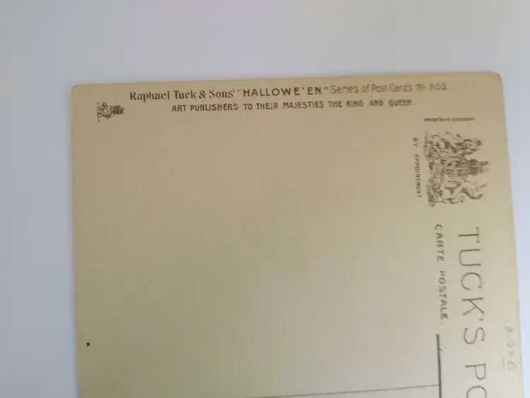 Unit of Sale: Single Unit Era: Pre-War (Pre-1914) Original/Licensed Reprint: Original Occasion: Halloween Postage Condition: No Subject: Artist Material: Paper Theme: Fantasy, Art, Holiday, Greetings Time Period Manufactured: 1900-1919 Type: Printed (Lithograph) Artist: Unknown Features: Divided Back, Embossed Brand/Publisher: Raphael Tuck & Sons Country/Region of Manufacture: Germany Year Manufactured: 1910 Antique: Halloween Vintage: Halloween Postcard Original: Postcard