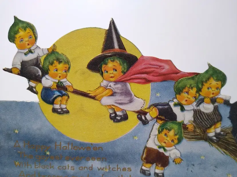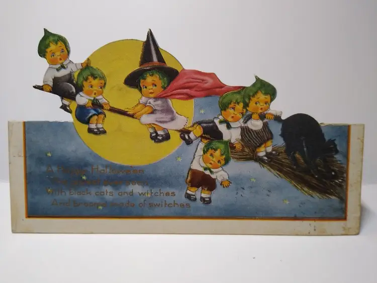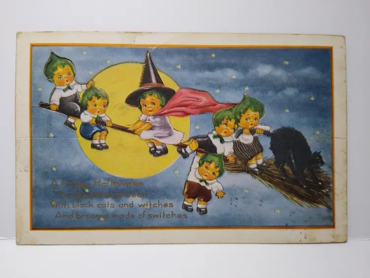 Size: Standard (5.5 x 3.5 in) Custom Bundle: No Personalize: No Type: Printed (Lithograph) Year Manufactured: 1915 Number of Items in Set: 1 Signed: No Original/Licensed Reprint: Original Occasion: Halloween Time Period Manufactured: 1900-1919 Unit of Sale: Single Unit Era: Pre-War (Pre-1914) Artist: Unknown Country/Region of Manufacture: United States Material: Paper Theme: Goblins, Art, Fantasy, Greetings, Holiday, Witch, Green Hair Features: Die-Cut, Divided Back, Embossed, Fold-Out Subject: Children Postage Condition: Yes Brand/Publisher: Whitney Franchise: Whitney Antique: Halloween Vintage: Halloween Postcard Original: Postcard