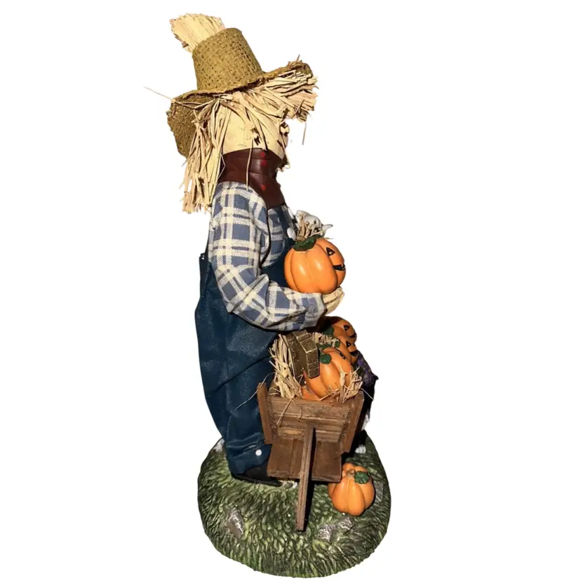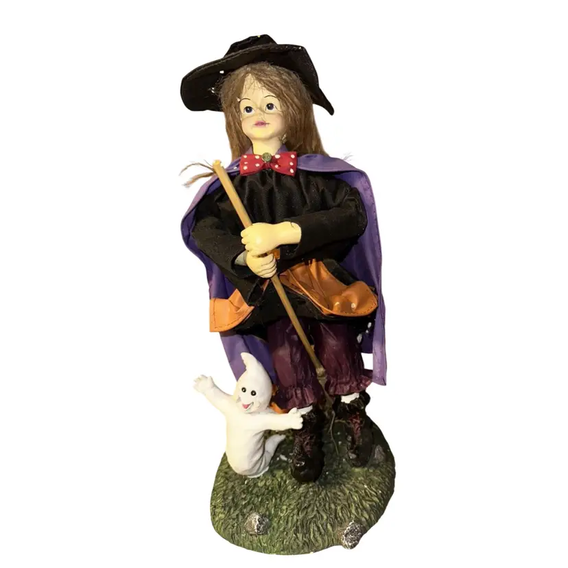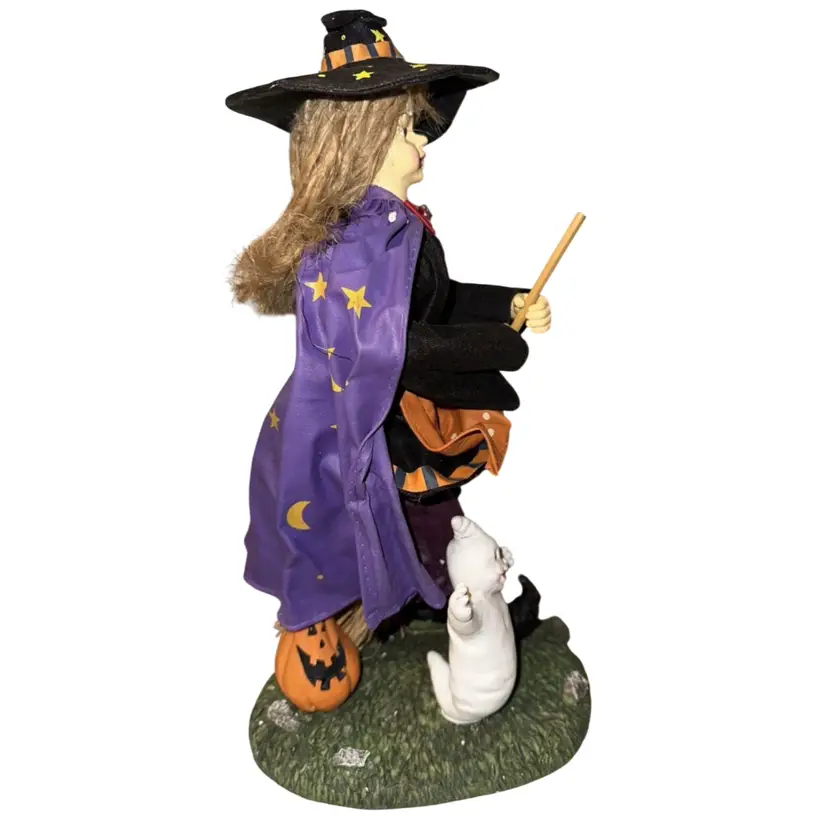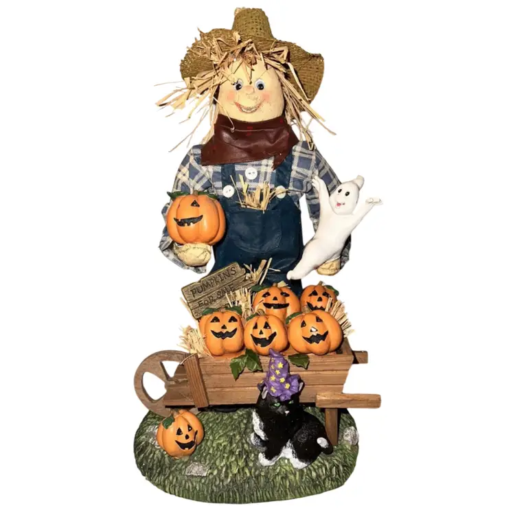 Halloween Scarecrow and Witch 13” Fabric Mache Figurines In original box Are in excellent condition, no chips or cracks. No issues Box is very beat up. Just look at the detail that went into making these