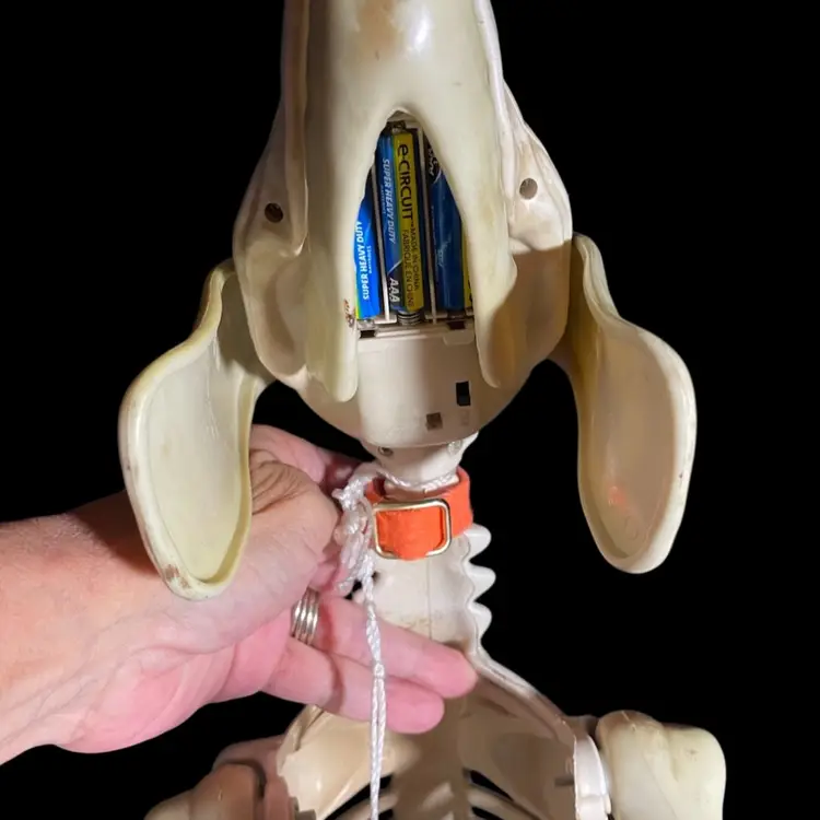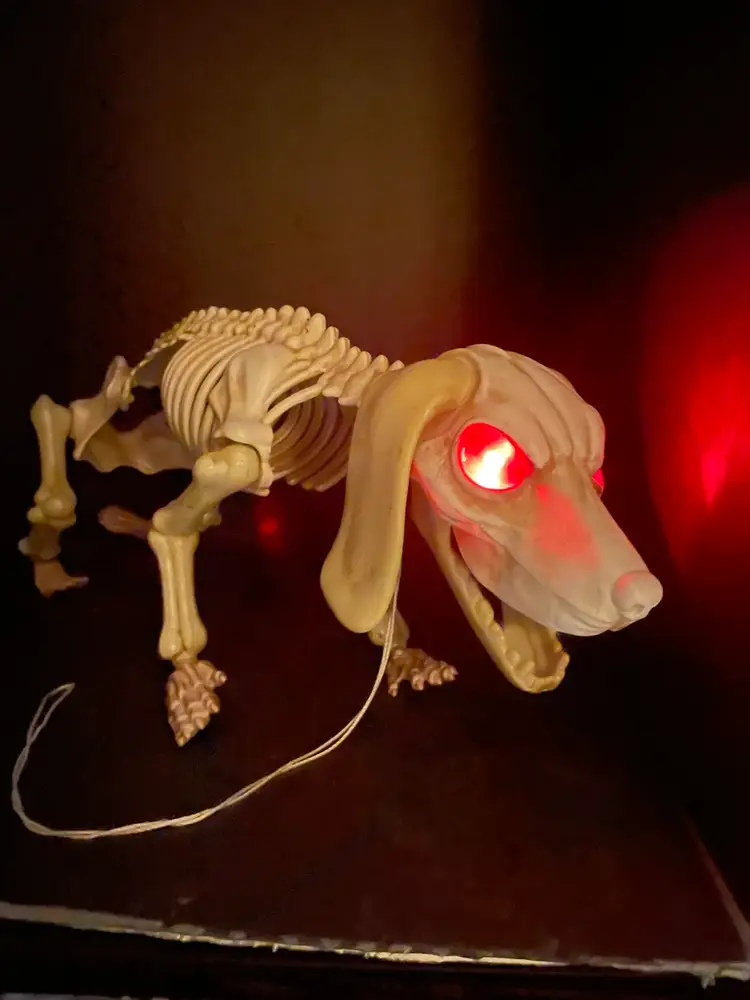 Halloween Skeleton Wolf Dog LED Red Eyes Growls Barks Animated Mouth 28" by 11" Works Great Condition is Used. Shipped with USPS Mail