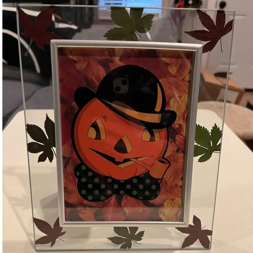 5x7 framed vintage reprint cardboard cutout Fall leaf background Glass leaf picture frame