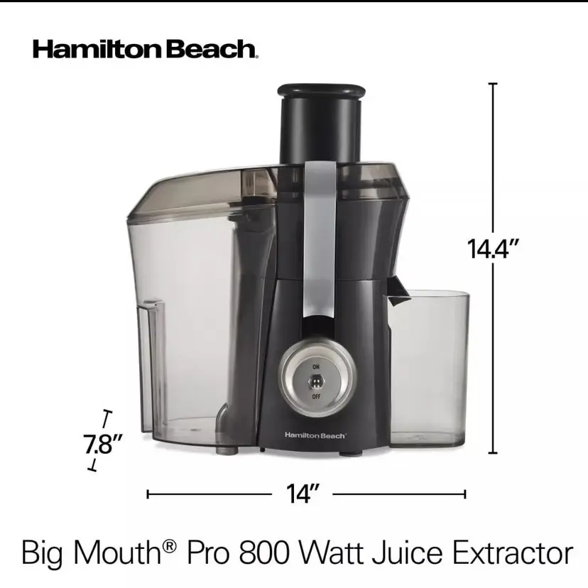 HAMILTON BEACH Big Mouth Pro Juice Extractor 800w Powerful Motor Model# 67650H New-Open Box UPC: 924783759668 Actual item shown in photos. See pictures for details.