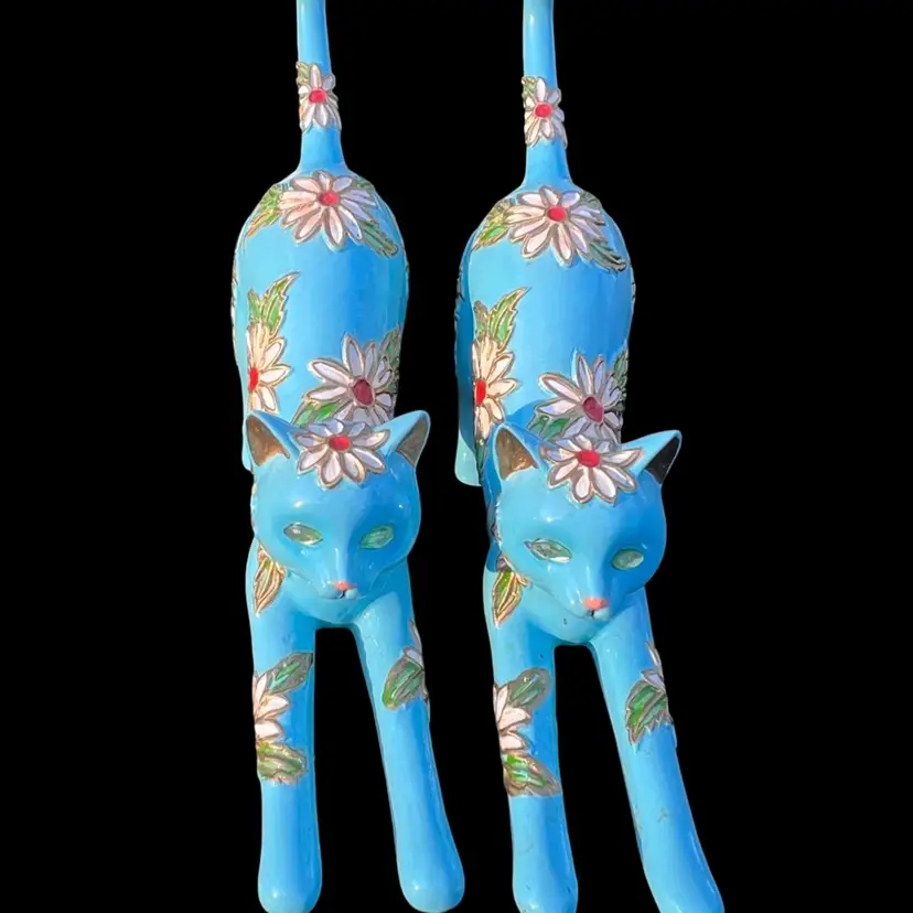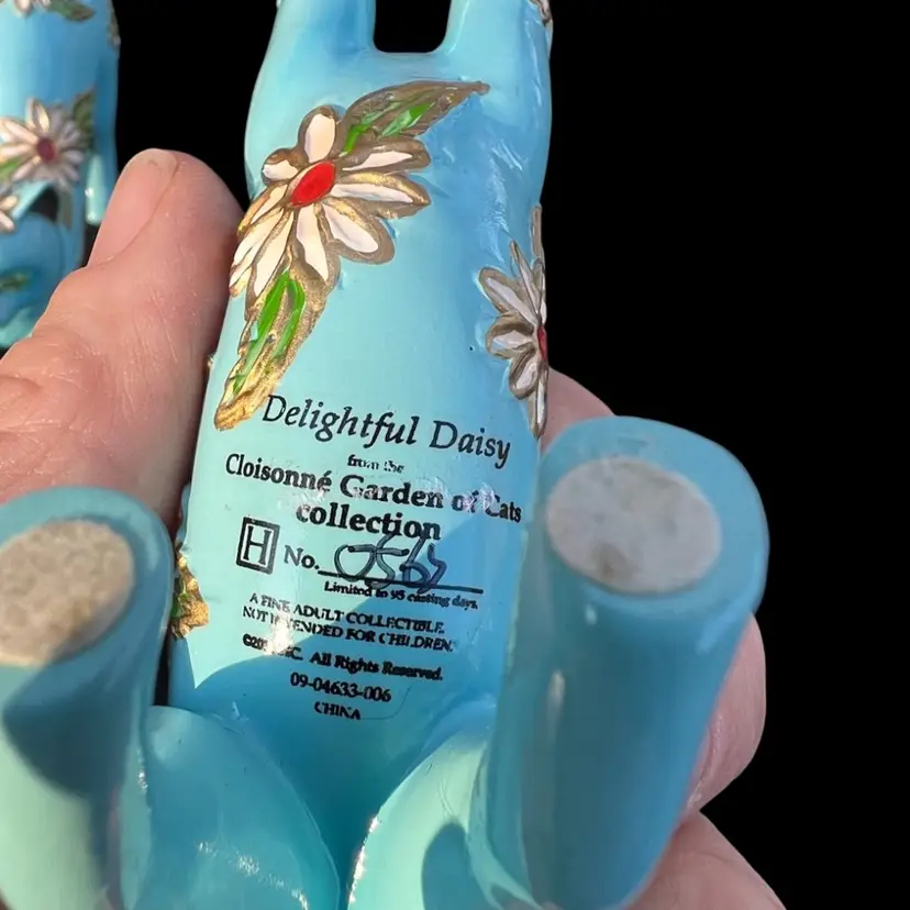 Set of TWO Delightful Daisy Cloisonné Garden of Cats Dated 2011 and numbered 5” long No chips or cracks 12/12/2024 BM