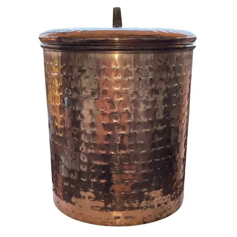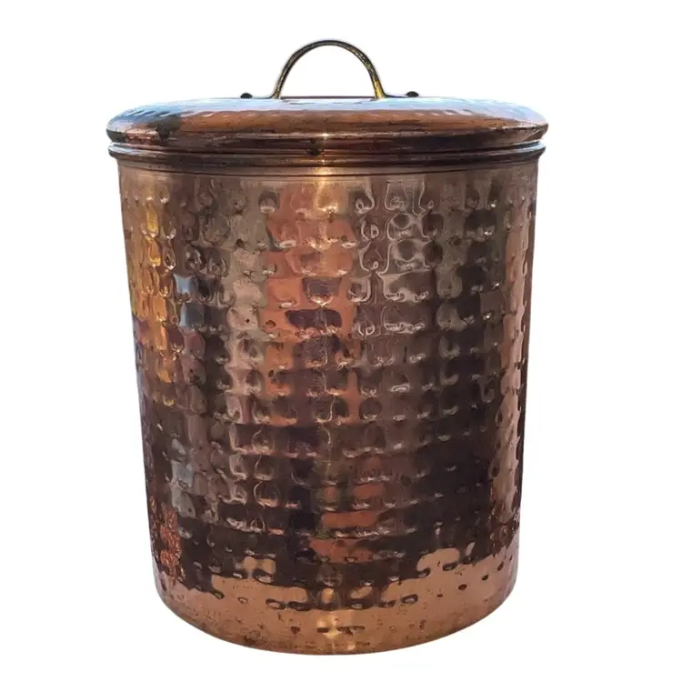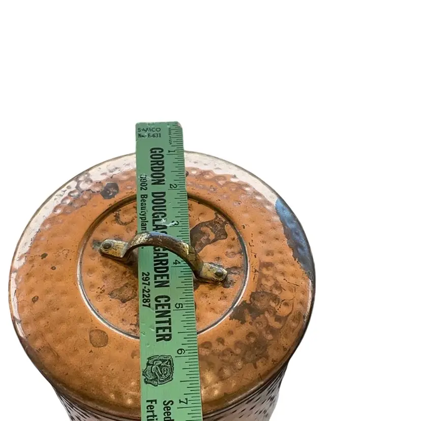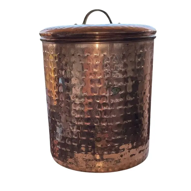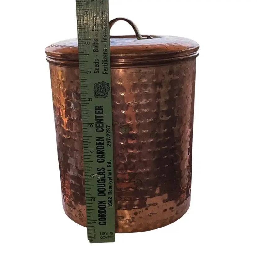 Beautiful copper tone canister. I have two. This is the larger. Check out other listing. Brass tone handle
