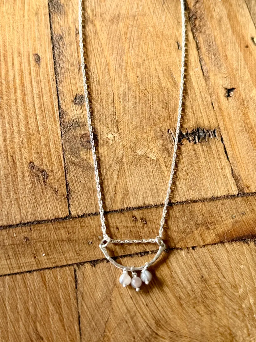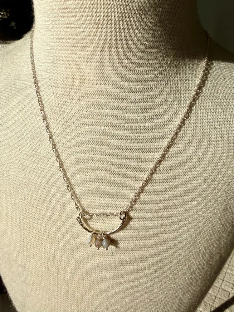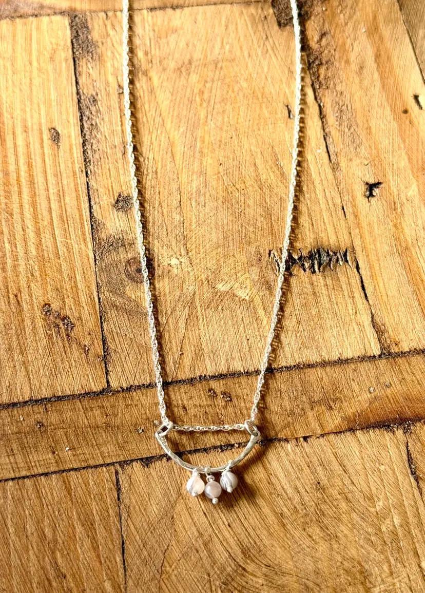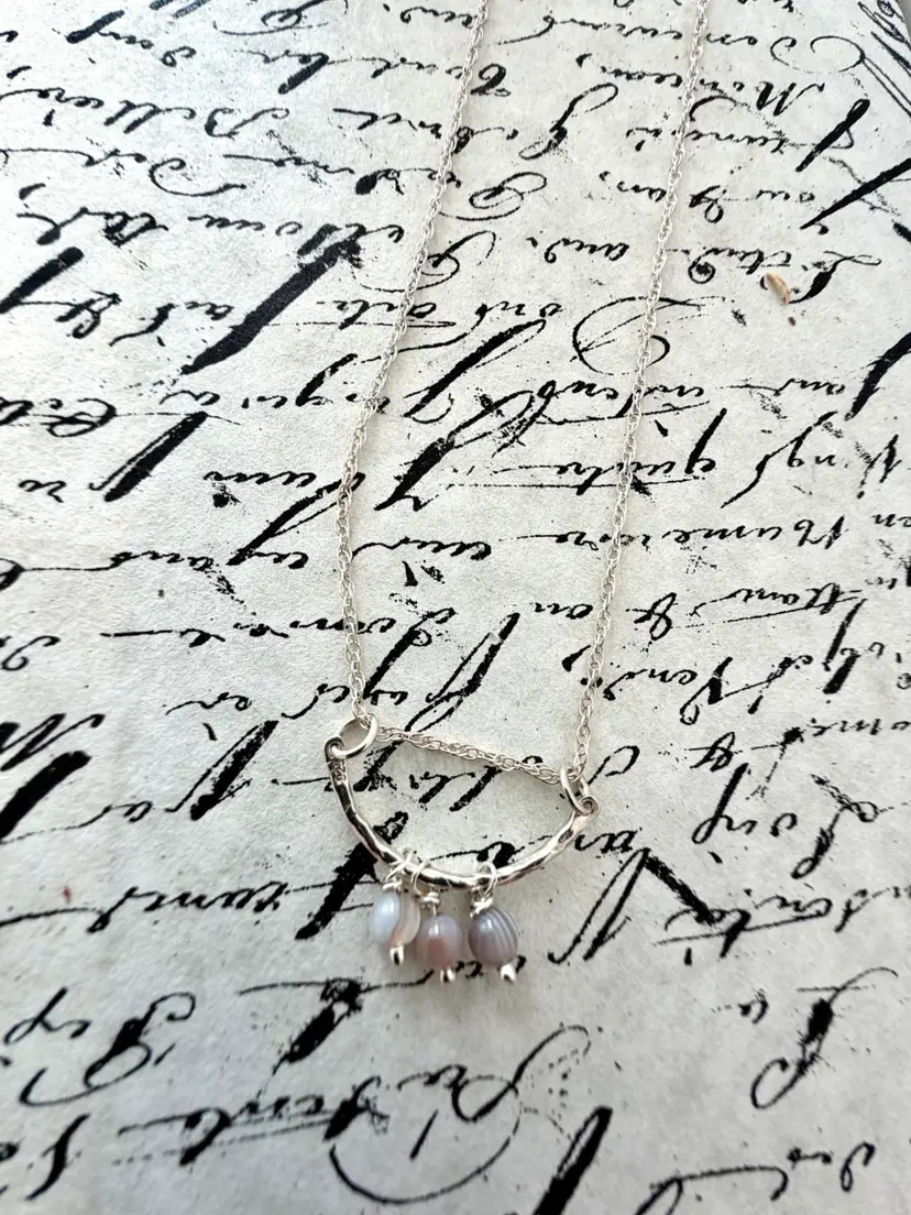 18”Silver 925 Chain 1” Curved Sterling Bar Three Hand Wire Wrapped Botswana Drops