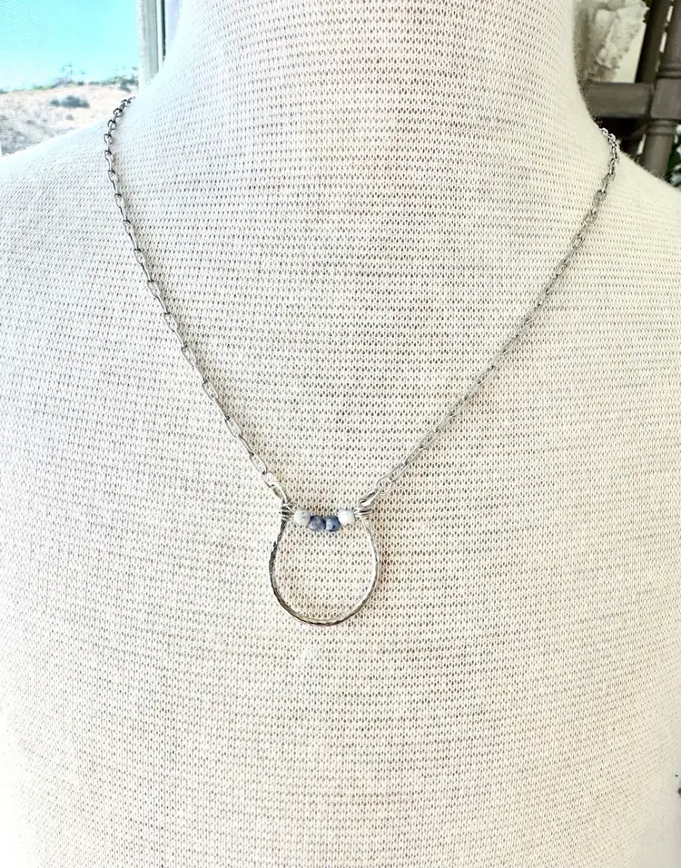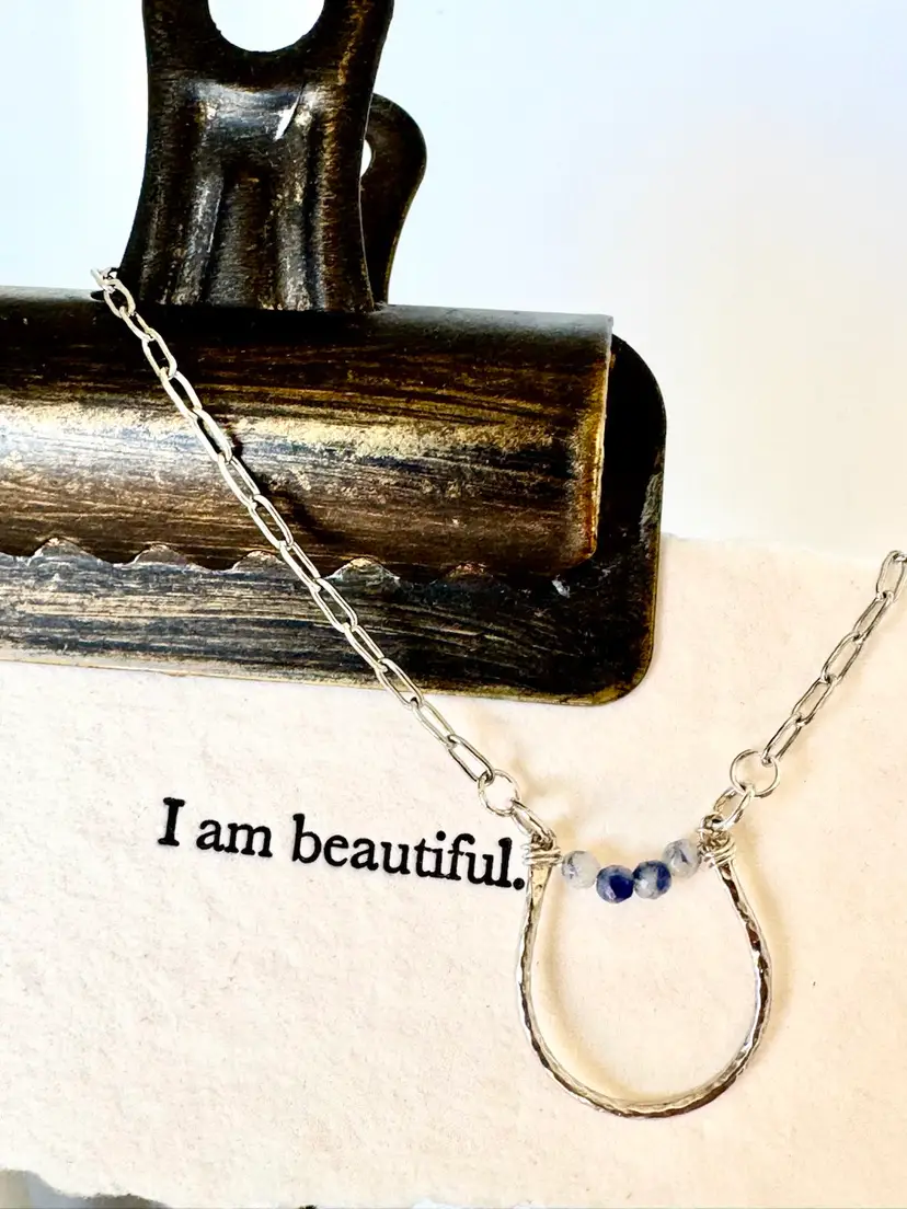 • GENUINE SODALITE: Features a stunning, natural sodalite gemstone, known for bringing emotional balance and clarity—a beautiful, deep blue that complements any outfit.
