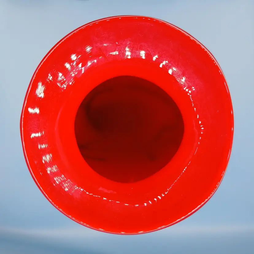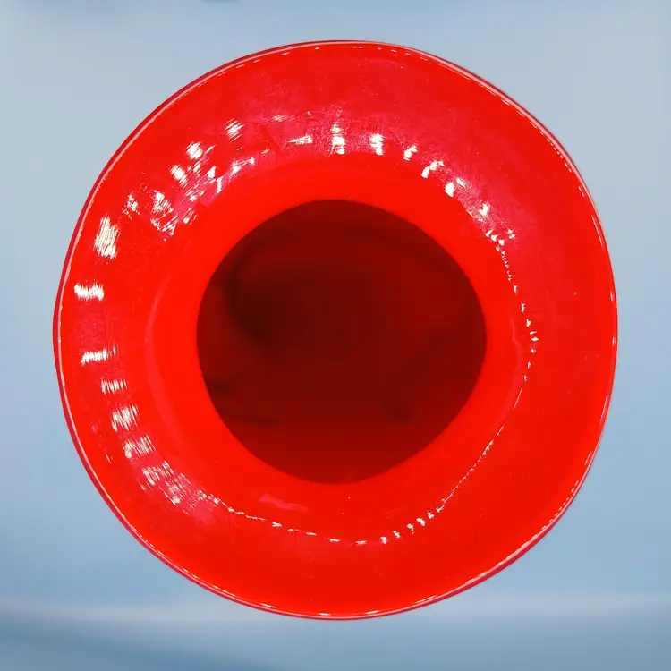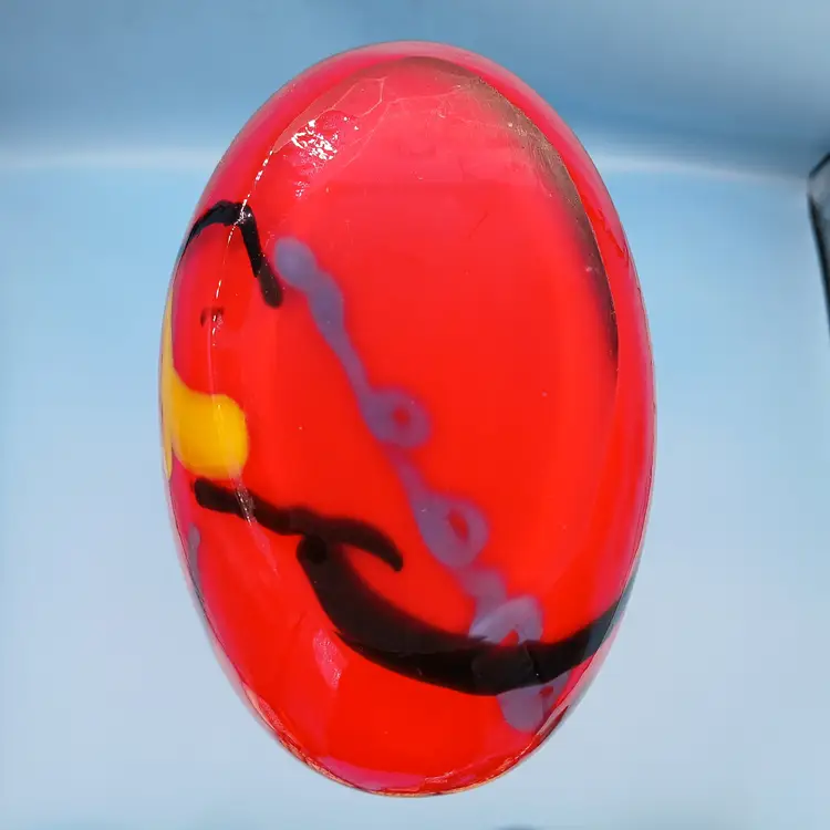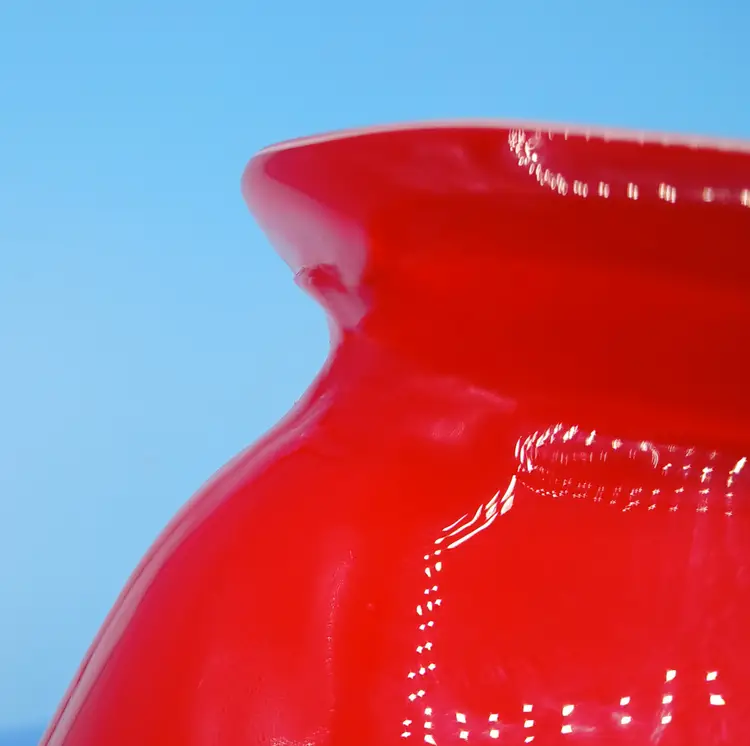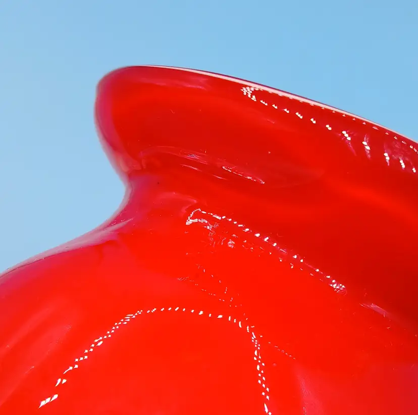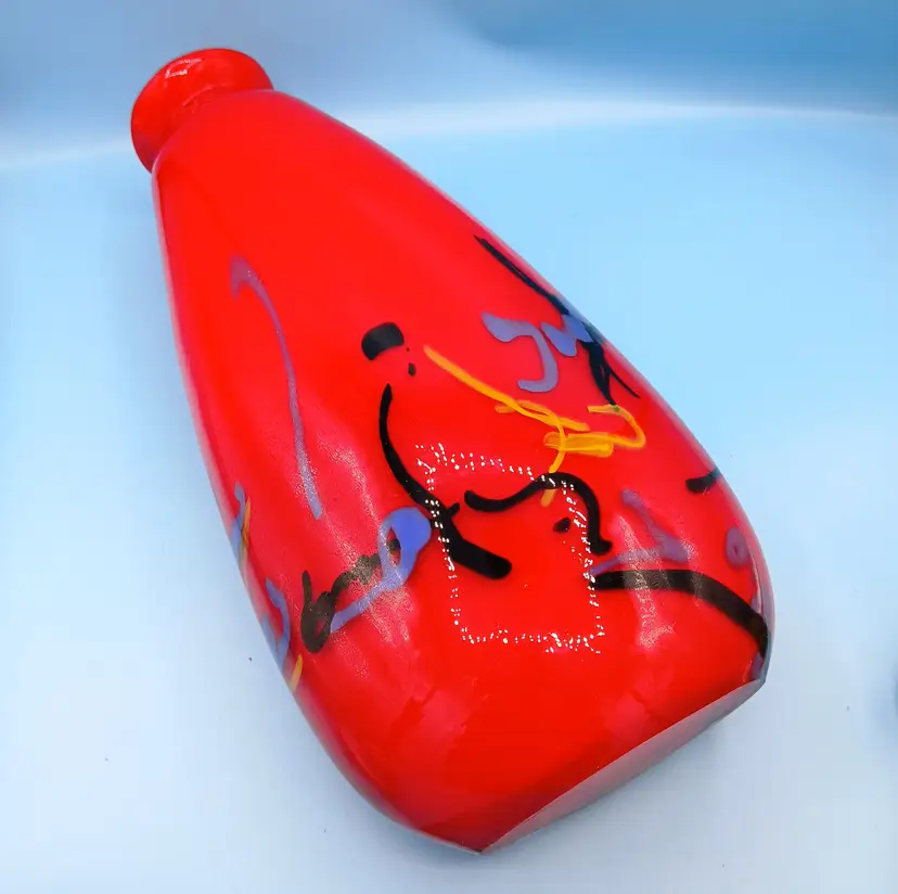 I picked up this particular vase because I love the abstract art on the front of it that looks like a person sitting in the space. The colors are extremely vibrant and the yellow, black and blue accents are captivating. The vase has an irregular rim that looks like a manufacturing defect (pictured). It doesn't interfere with display at all. It measures 14" high and 7" across at the widest part. This vase is not signed and the country of origin is uncertain. It's definitely a statement piece that will grab attention anywhere it lives. Thanks for looking!