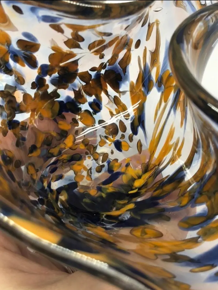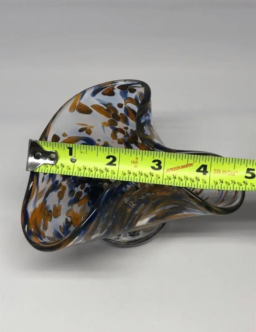 Beautiful blue & orange colors Unique shape No chips or cracks Perfect for trinkets, jewelry, glass collectors, and many more