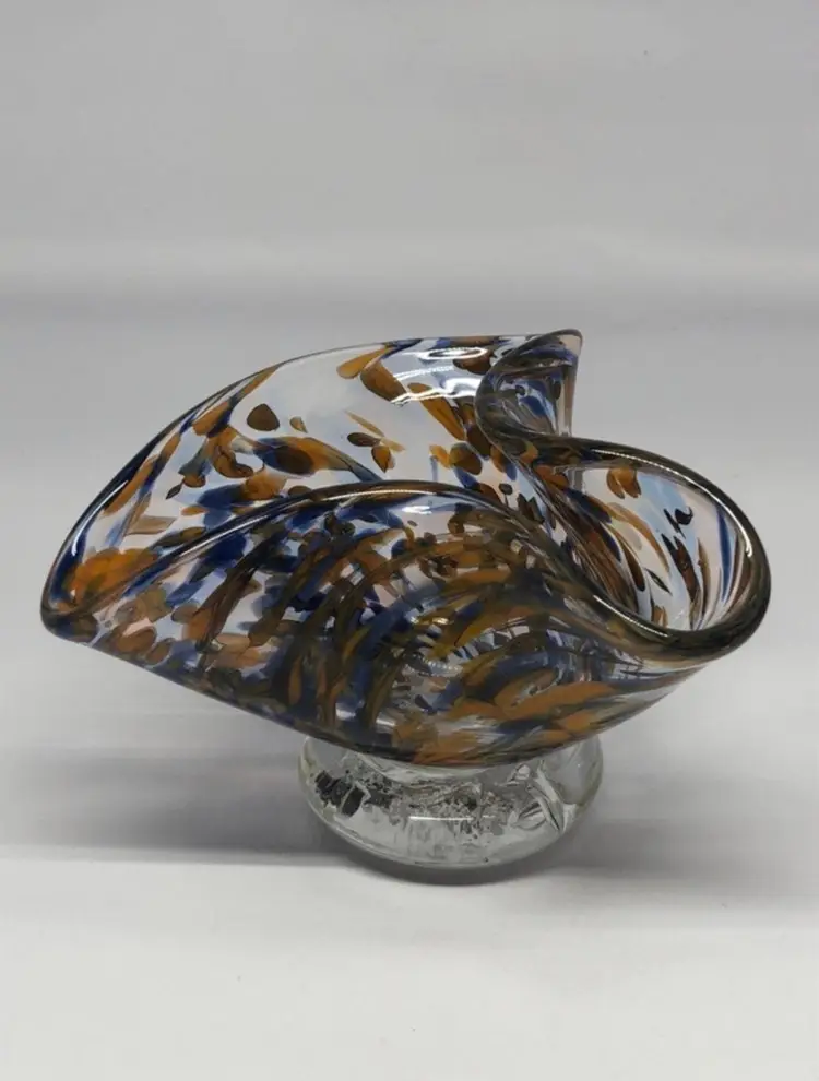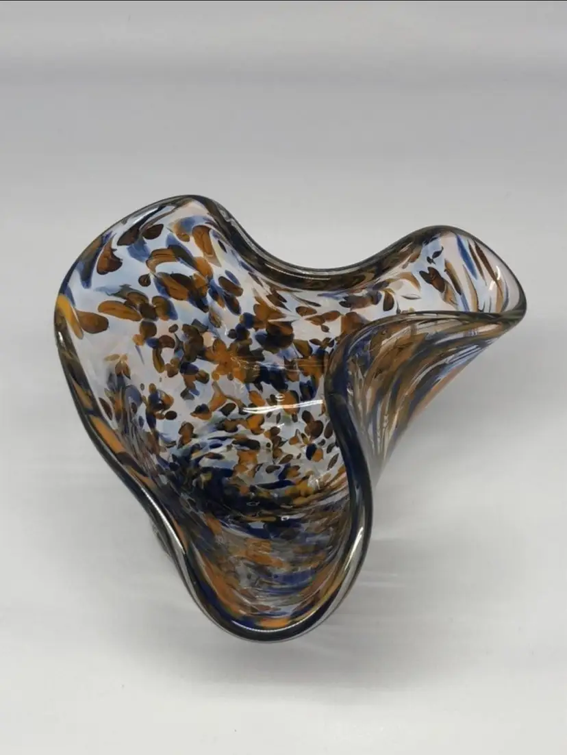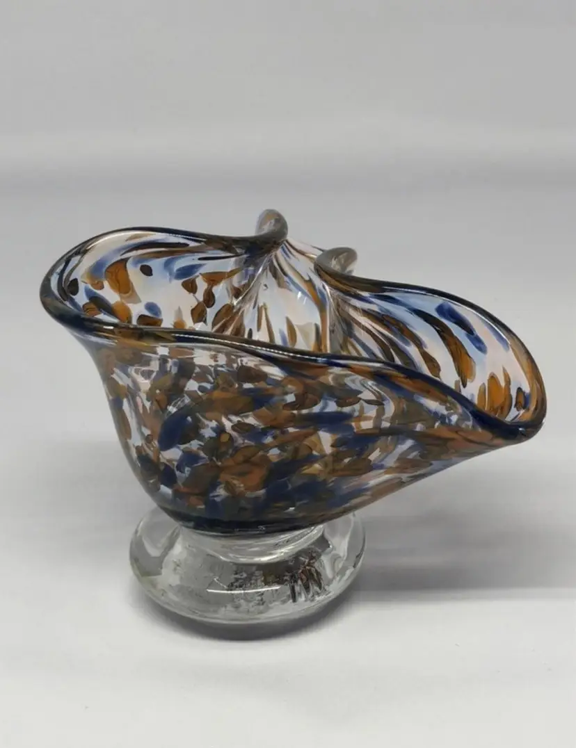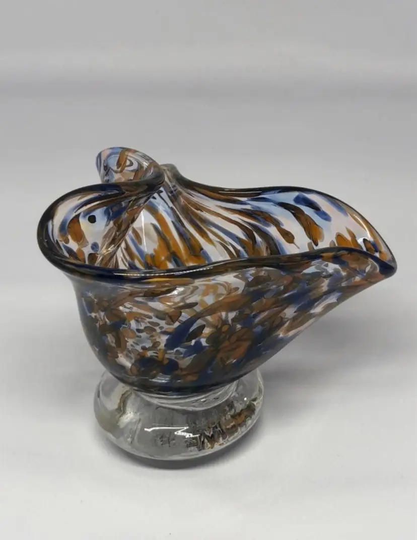 Hand-Blown Art Glass Confetti Blue & Orange Trinket Dish
