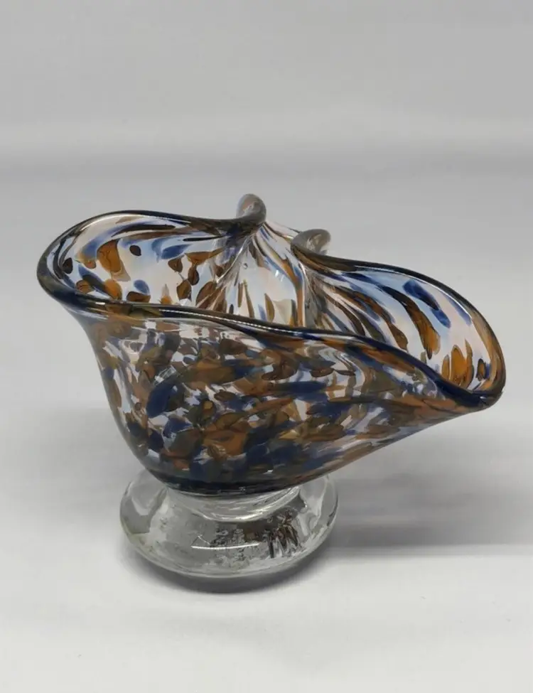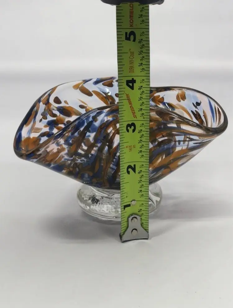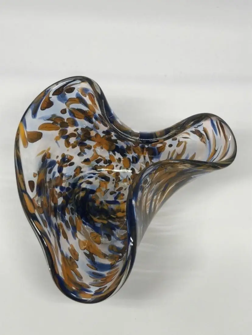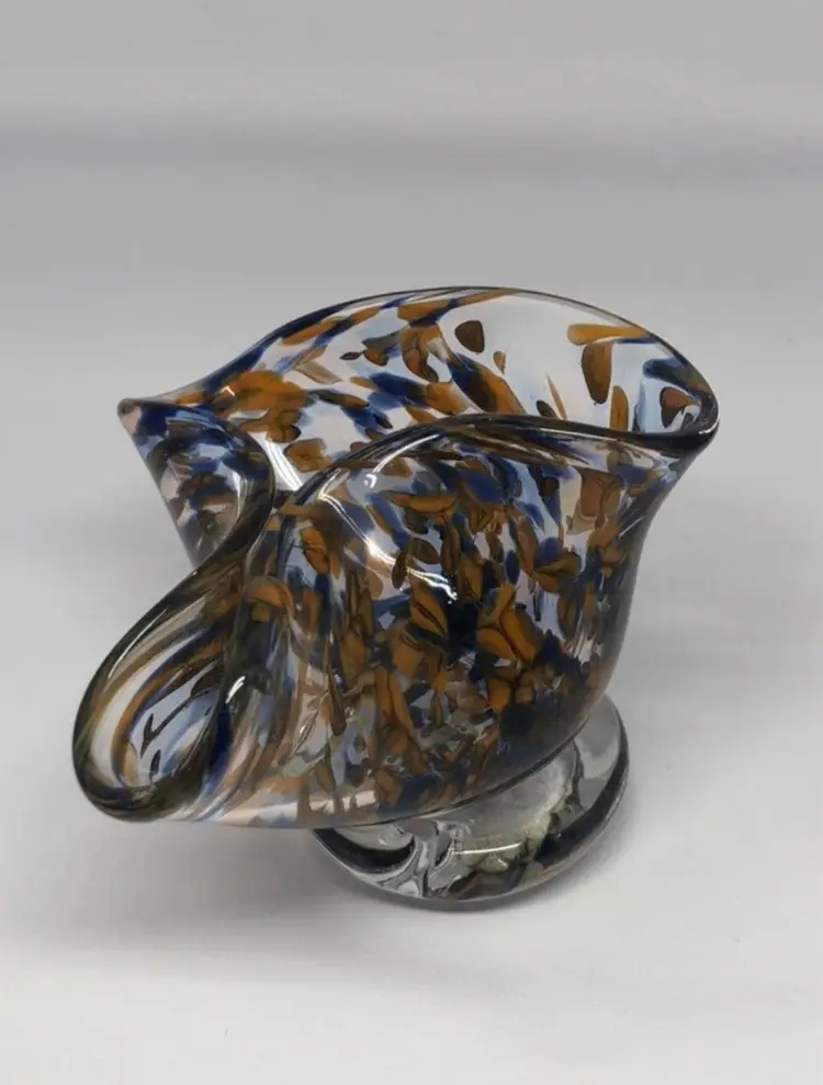 Hand-Blown Art Glass Confetti Blue & Orange Trinket Dish