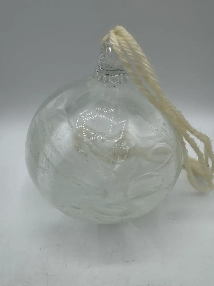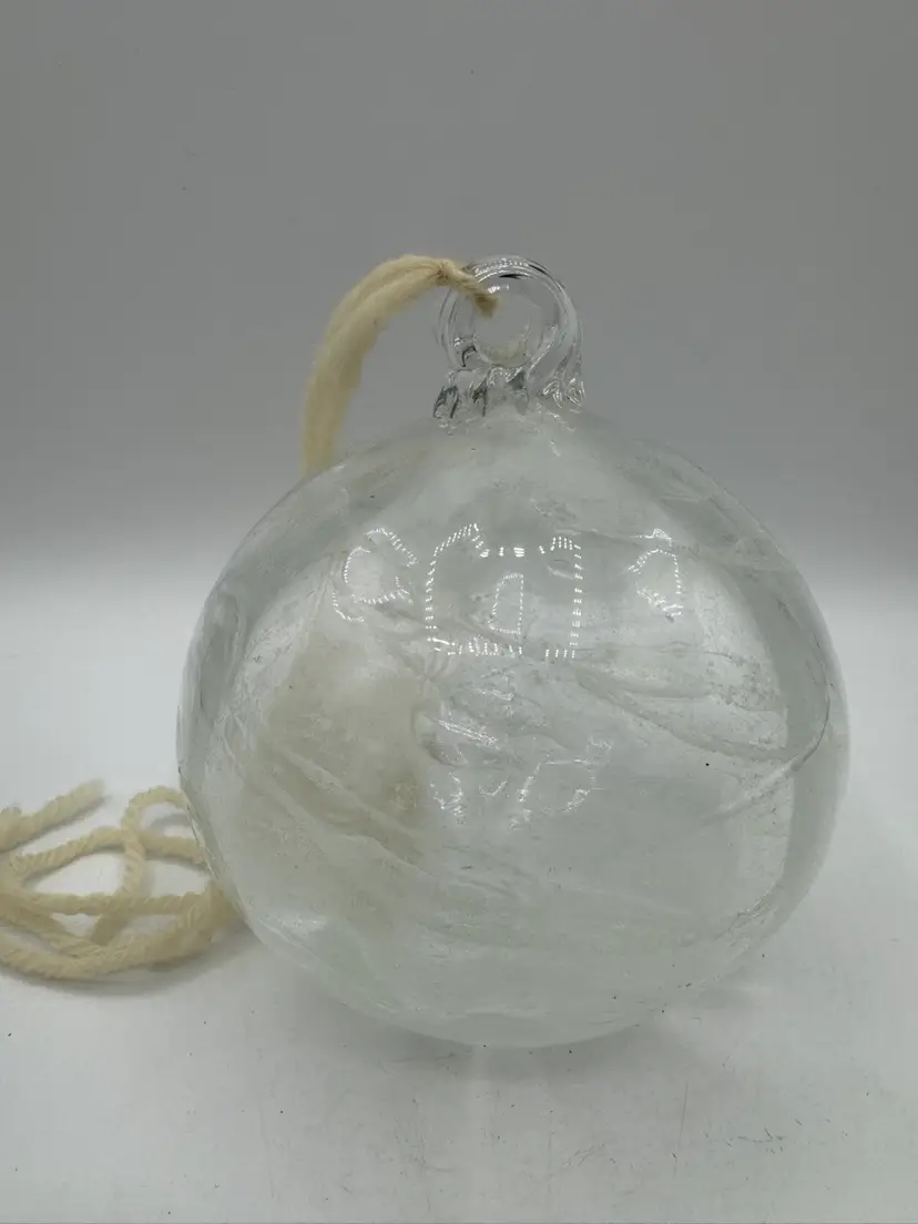 Amazing hand blown glass orb. Glow in the dark and under UV light. Amazing rare find! Excellent condition. No chips or cracks. Measures 5 1/2" X 5"