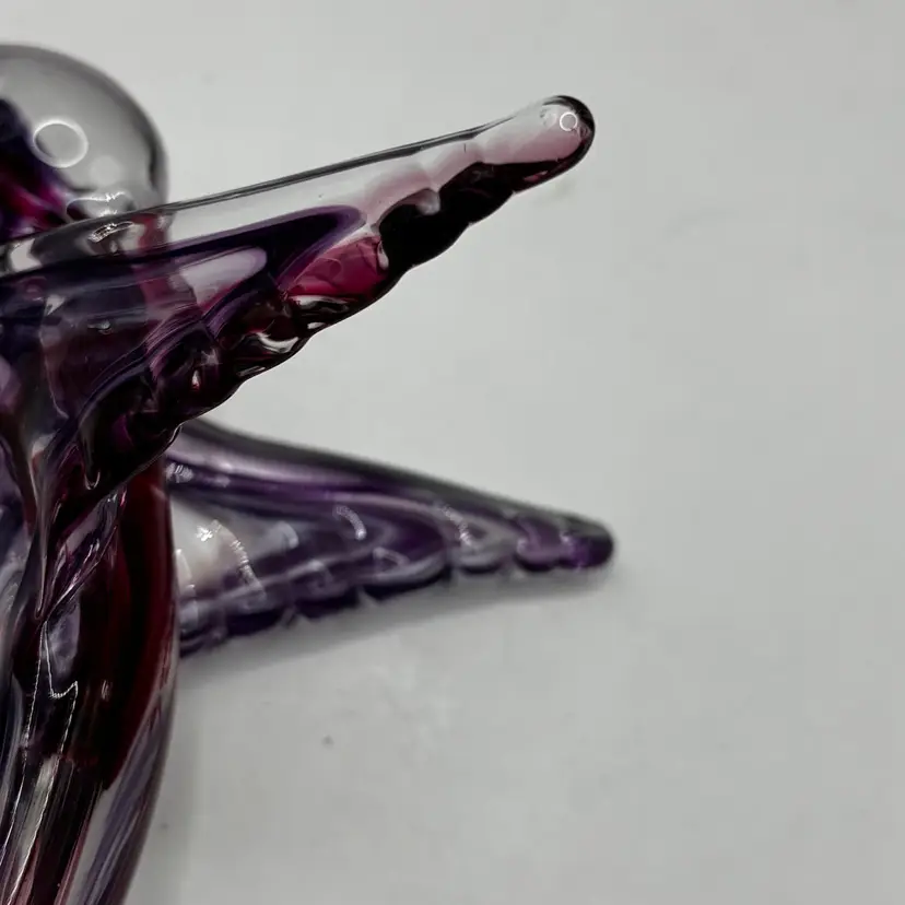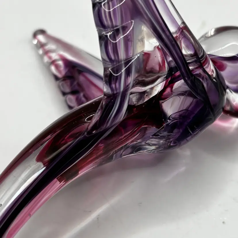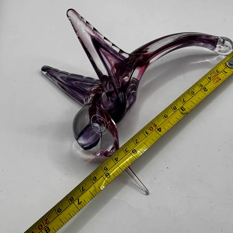 Hand Blown Art Glass Purple Swirl Humming Bird. This bird is stunning! It is signed by the artist.Third picture has the signature.