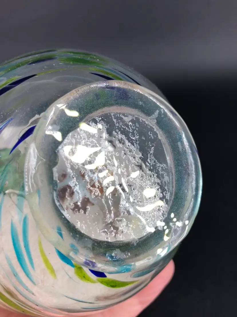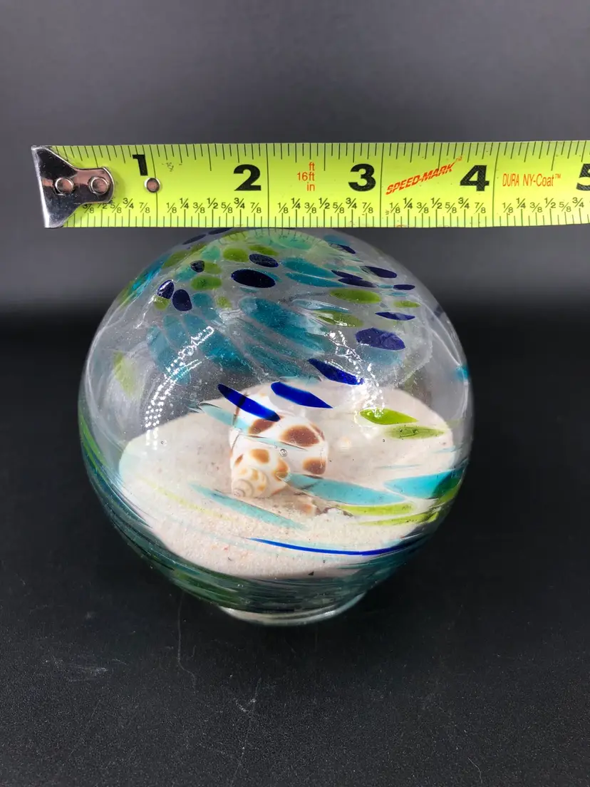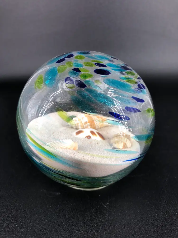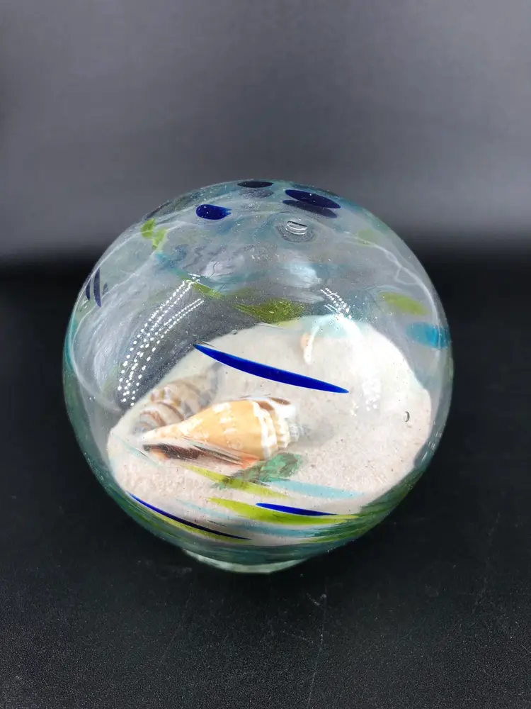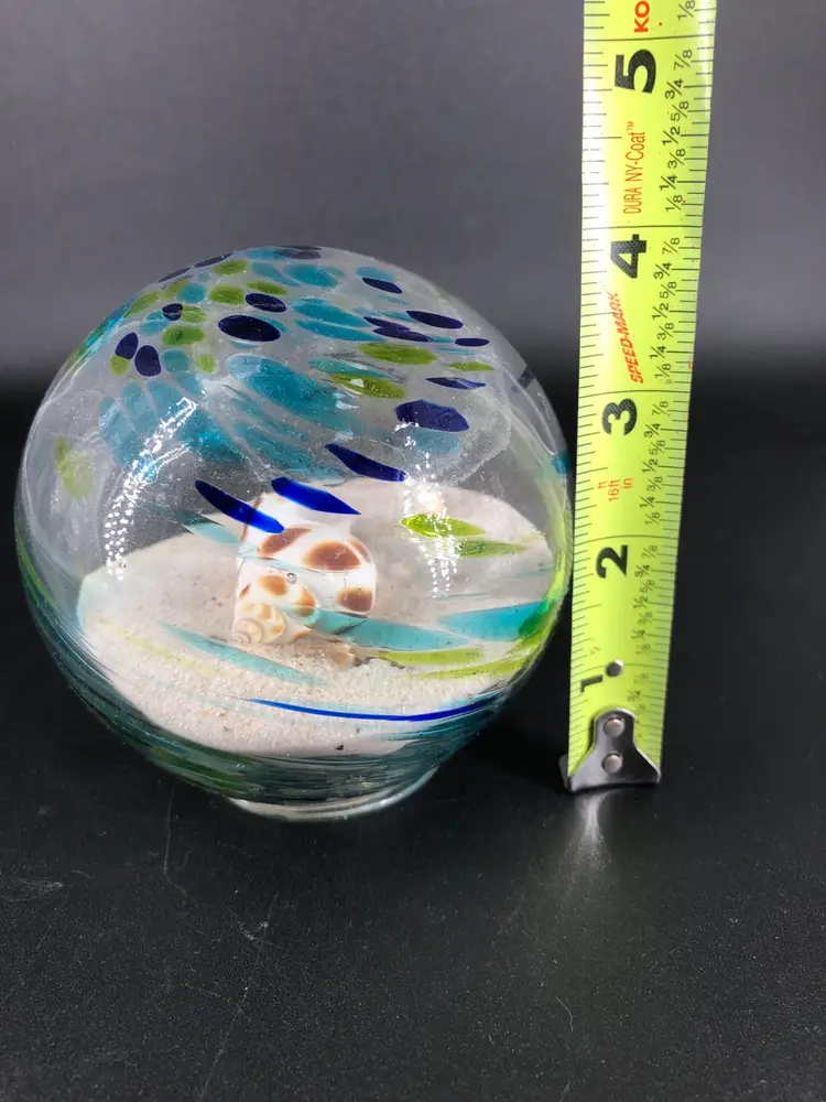 Absolutely stunning piece No chips or cracks Glass filled with sand and shells Really gorgeous colors Great for glass collectors, nautical lovers, and more