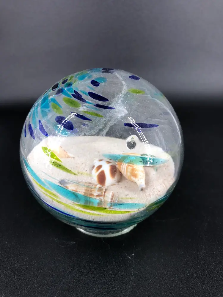 Hand-Blown Art Glass Sea Globe with Sand & Shells