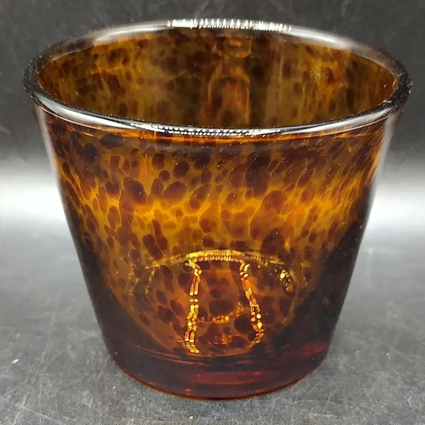 Hand Blown Art Glass Tortoise Shell Style Planter in good condition height 3.5" x diameter 4"