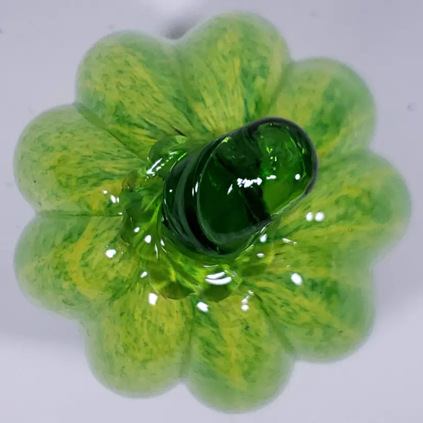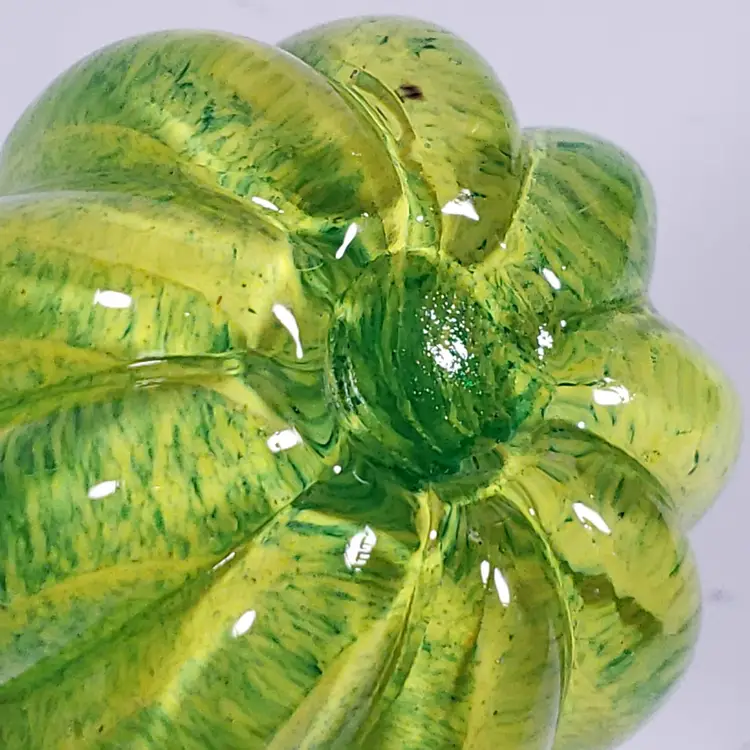 Hand Blown ART GLASS Yellow Green Spatter Cased Clear Pumpkin PAPERWEIGHT GLOWS