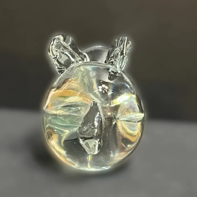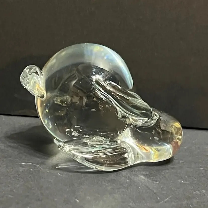 Super cute! Great condition. Very clear polished bottom. Green manganese glow under black light