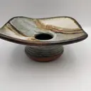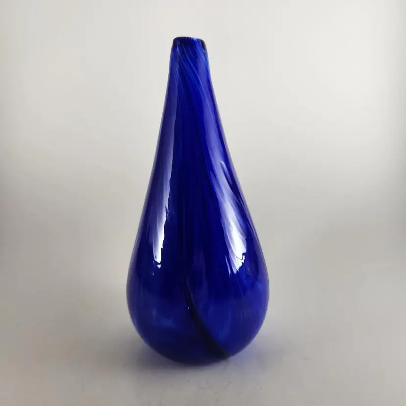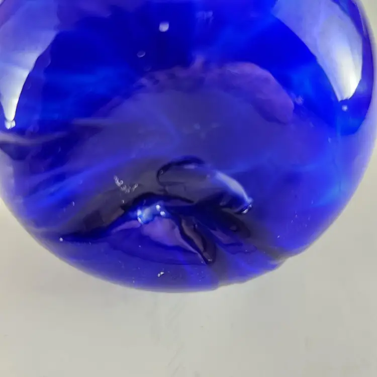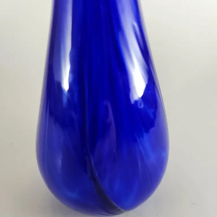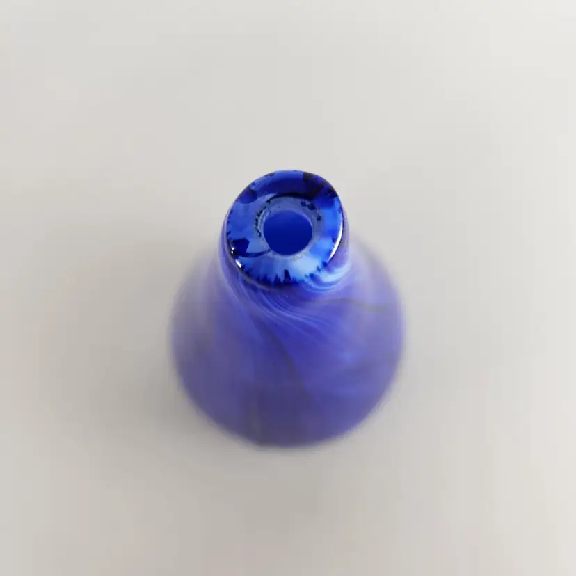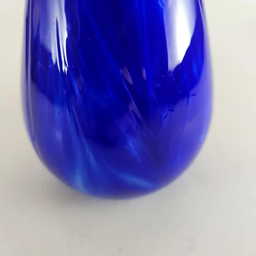 This little bud vase is a really beautiful piece of art glass. It has swirls of white and darker blue mixed with it and artist marked.