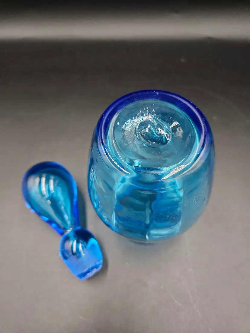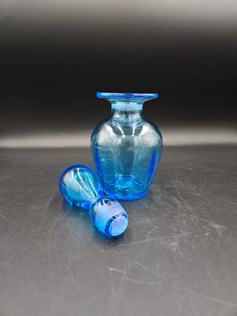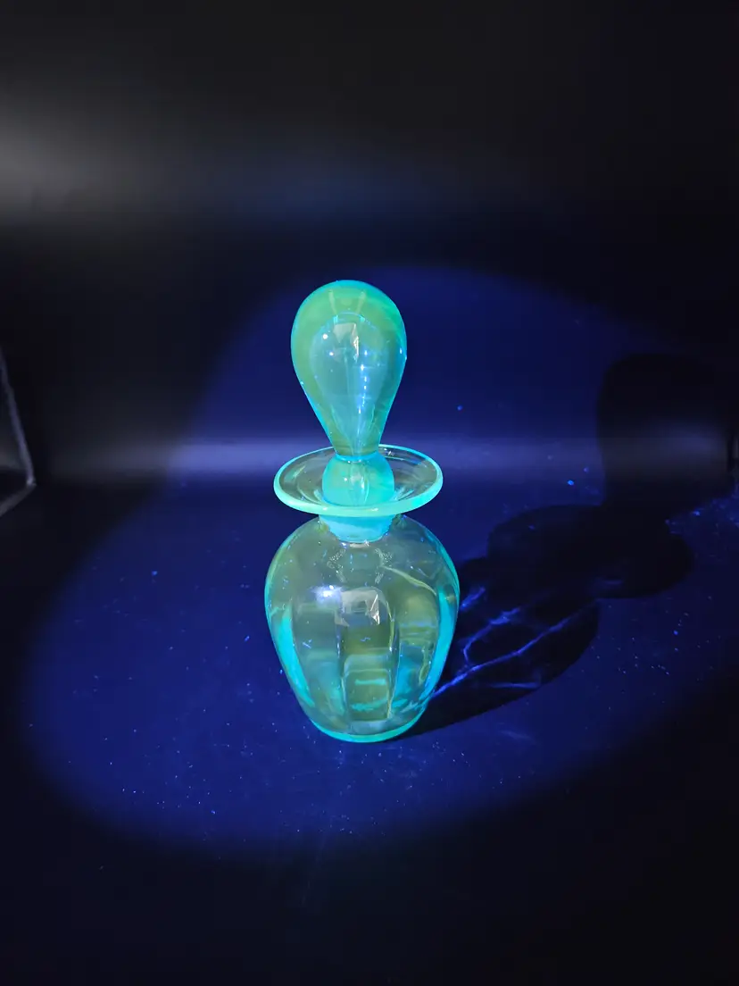 No chips or cracks. Stopper is ground and base has a pontil. GLOWS!
