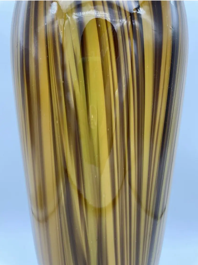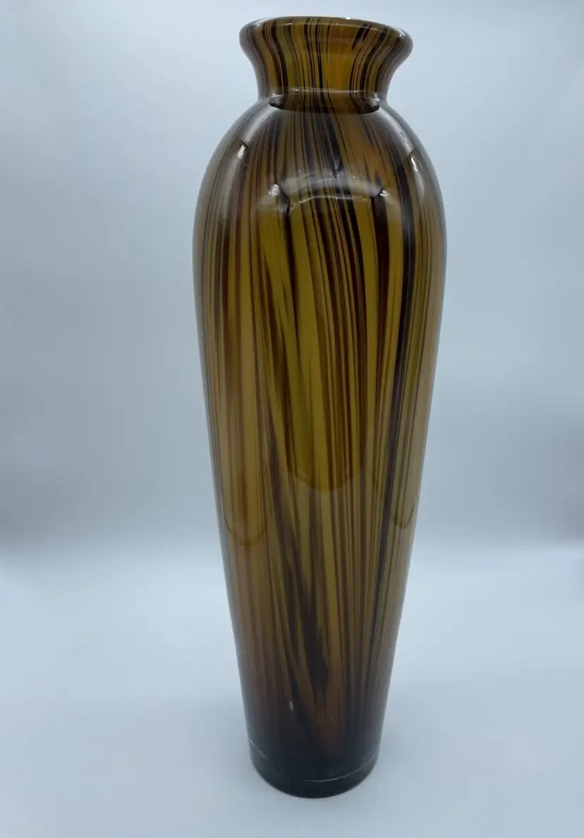 Hand-Blown Glass Vase Multi Shaded Tans And Browns With White Interior Cased 18"