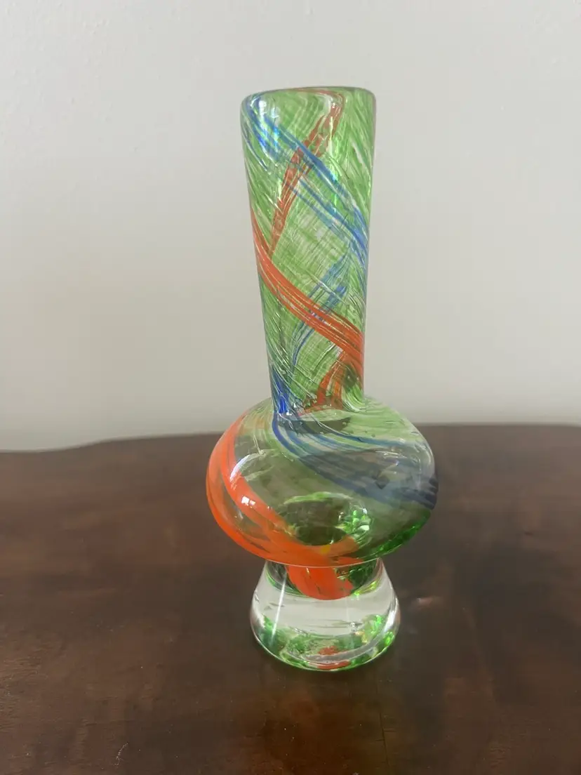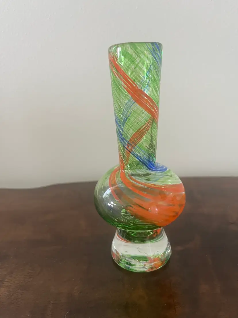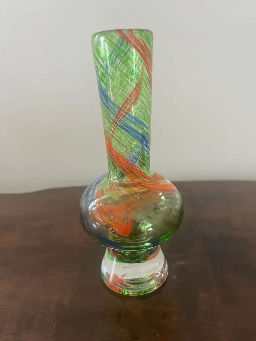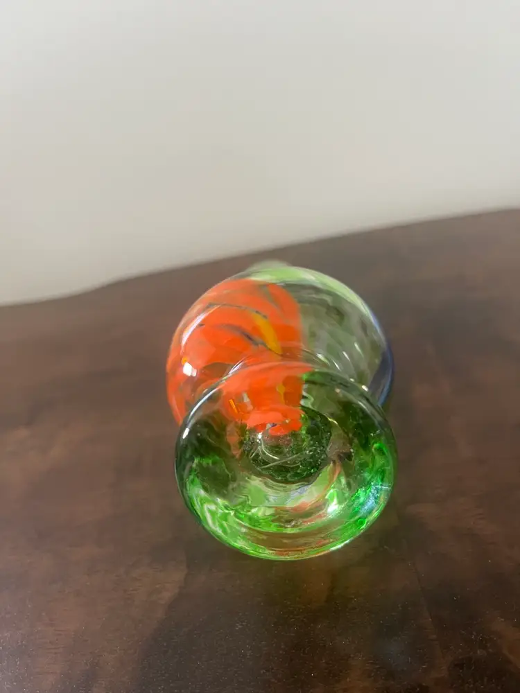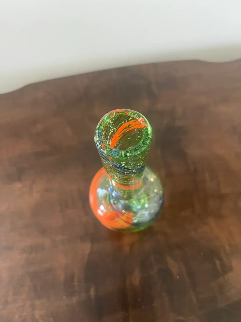 Beautiful hand blown glass vase with nice vibrant colors! 6” tall. No chips or cracks.