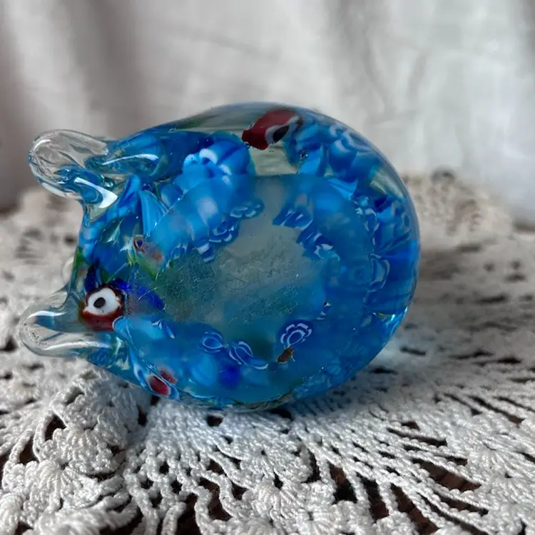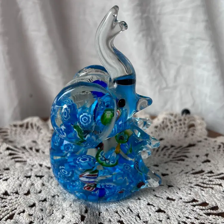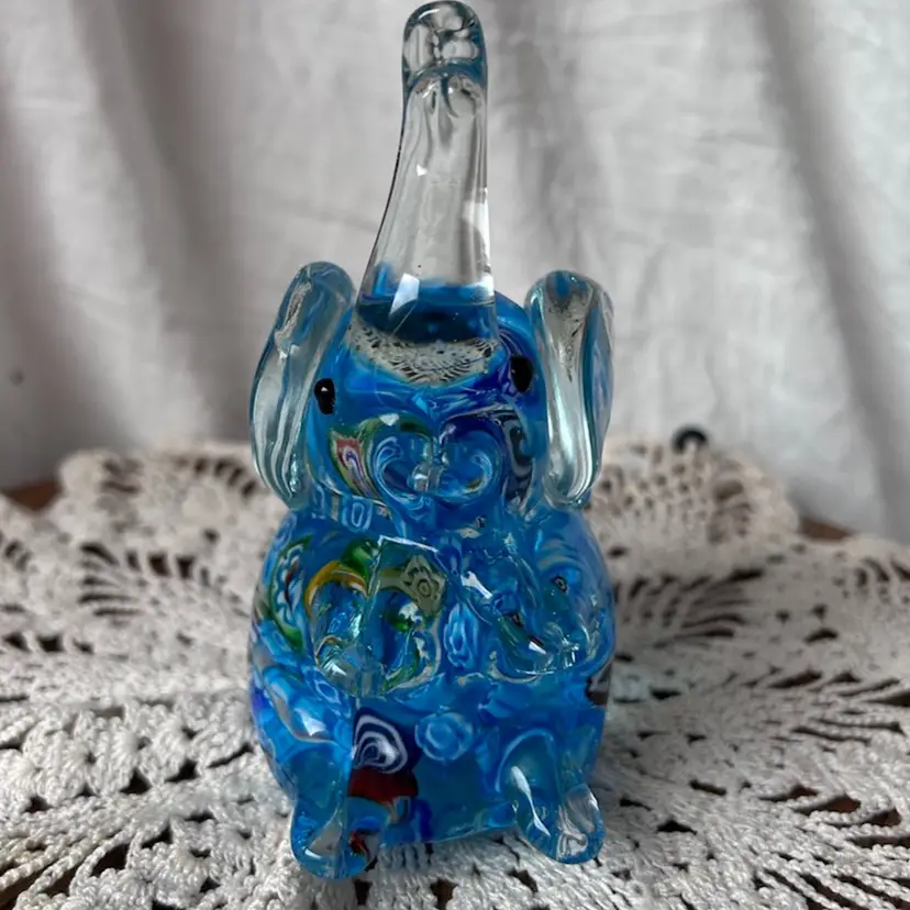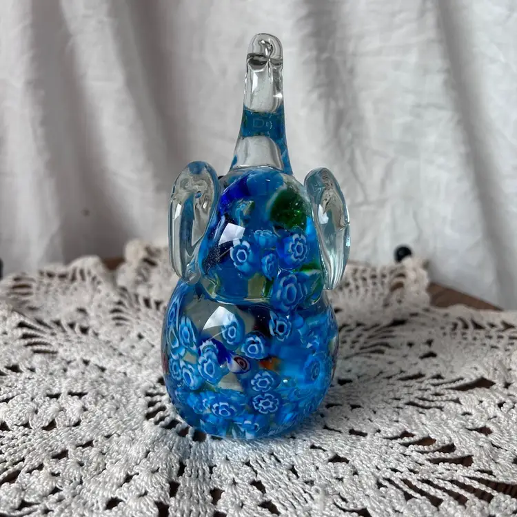 Sweet trunk up glass elephant paperweight that’s in excellent condition. Measures 5” tall, 2.5” wide, and 2.75” long.