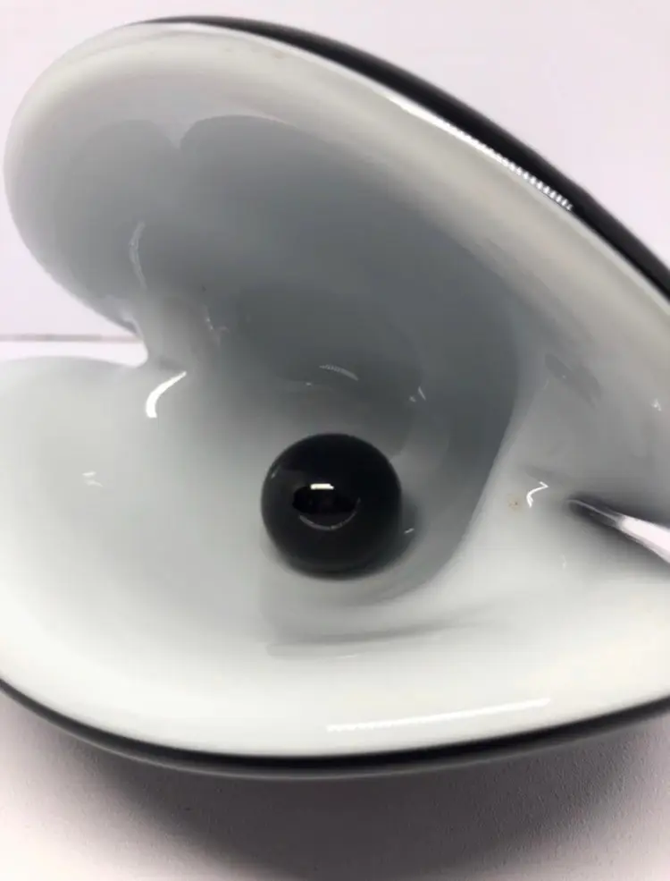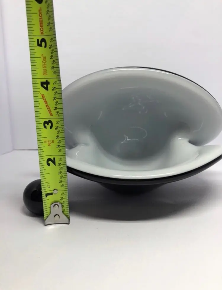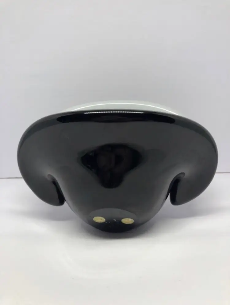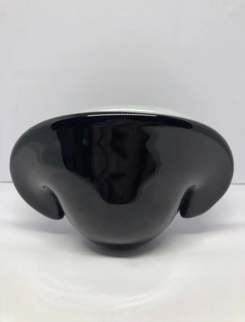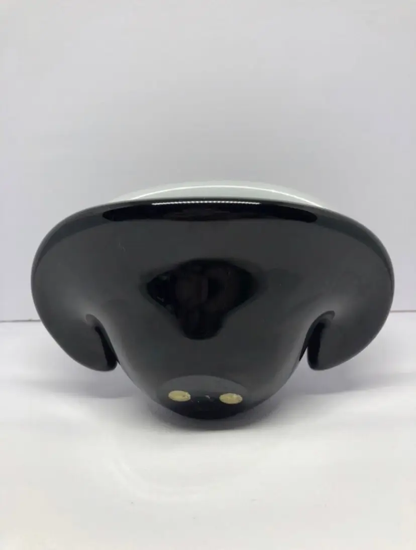 Absolutely stunning No cracks or chips Can be sat two ways. It has two flat spots I’m unsure if this is made by AVEM or Alfredo Barbini Beautiful black and white Comes with a black glass Pearl Great for glass collectors, Murano collectors, a sea themed home, and many many more