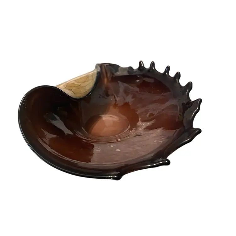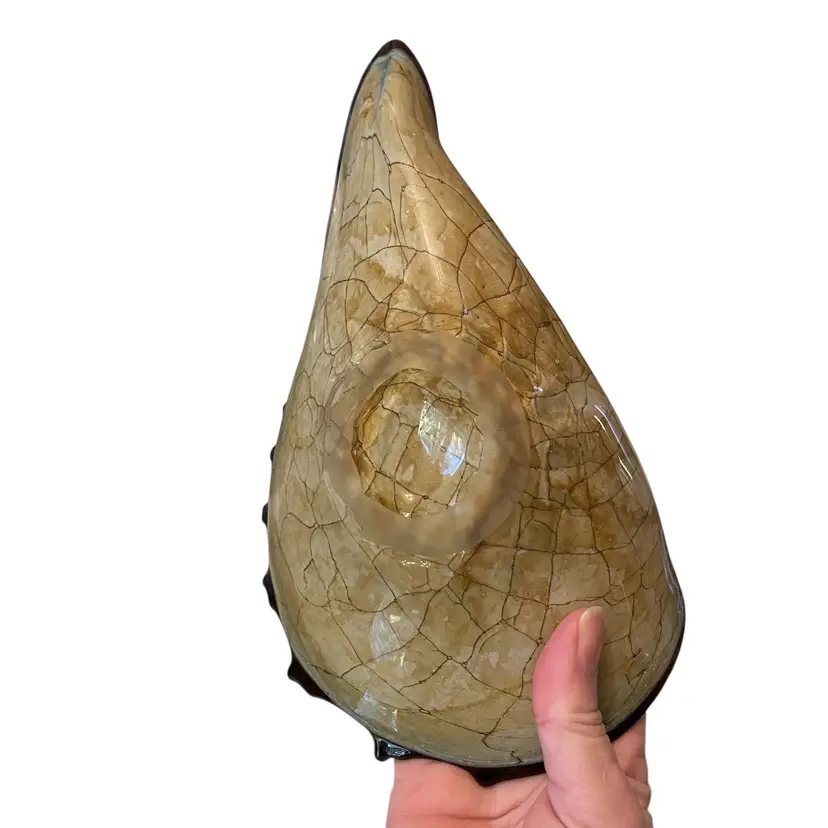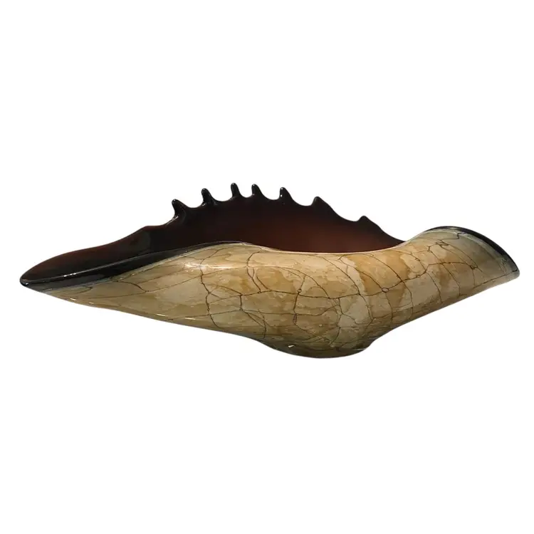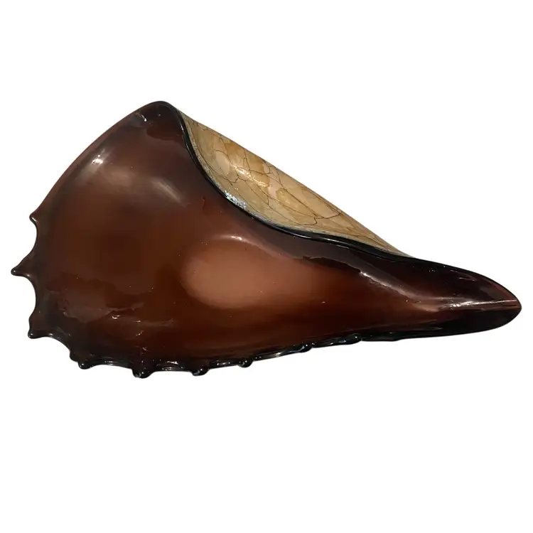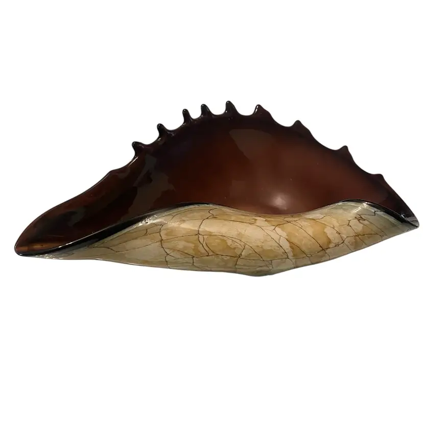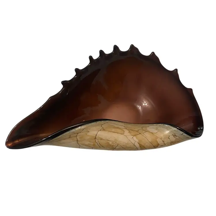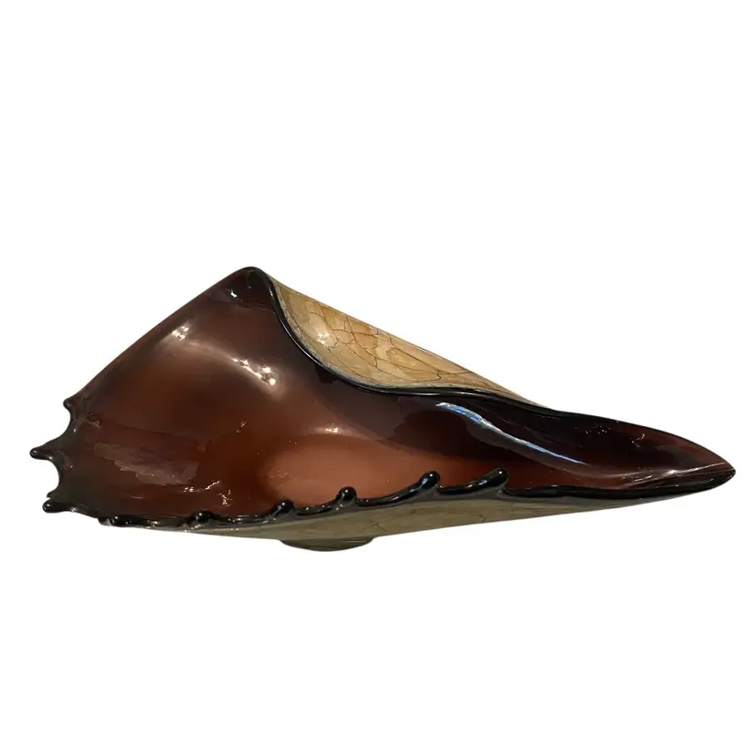 Hand blown murano style folded conch shell glass bowl. No chips. 10in X 5in
