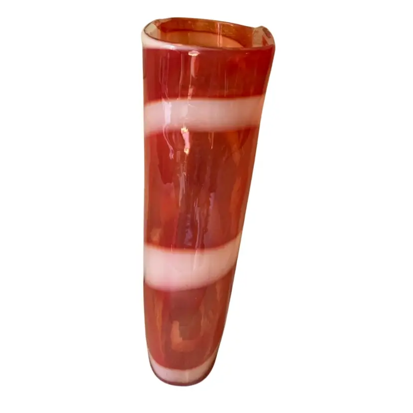 Unmarked, hand blown. Smooth bottom. No chips or cracks. Original owner stated they had it since 1980. 8 3/4 x 4 x 15 inches