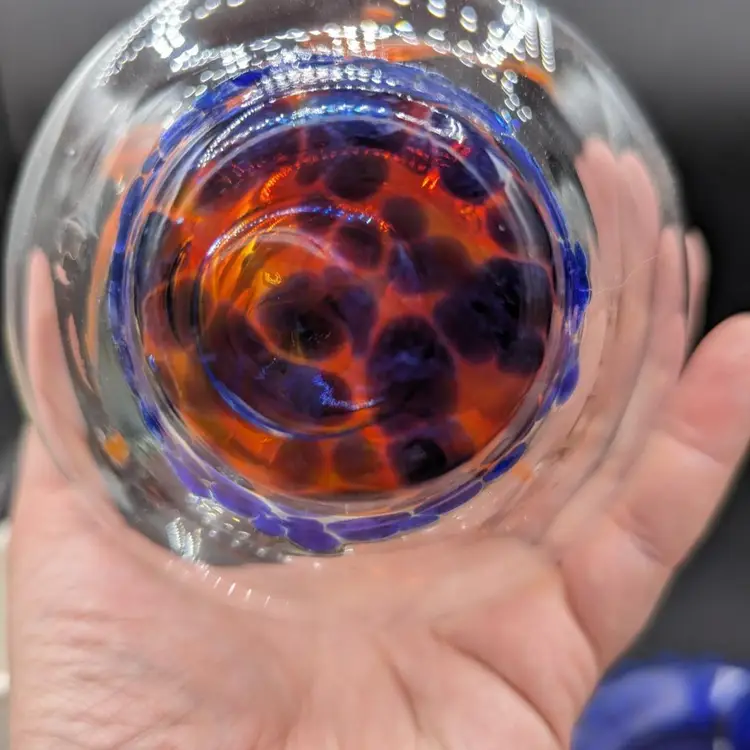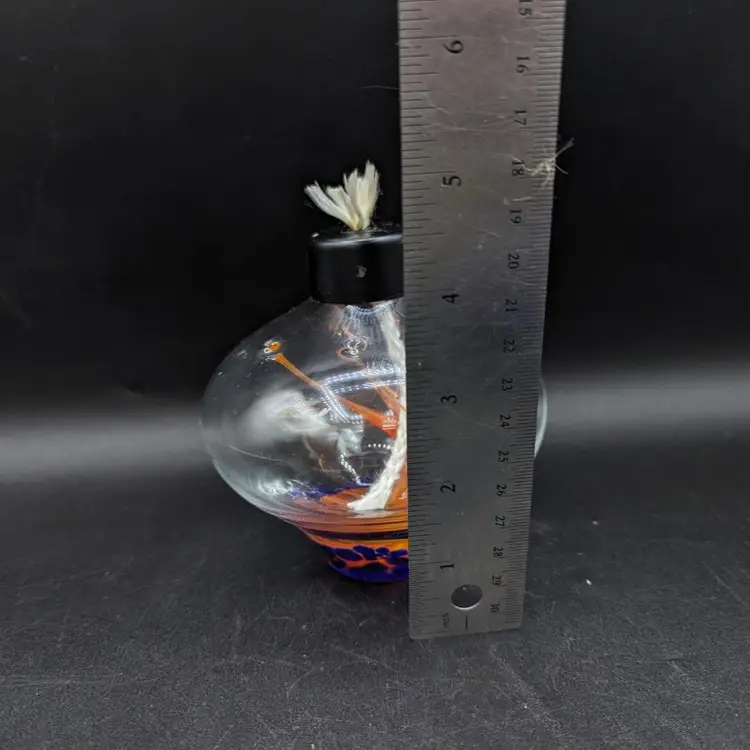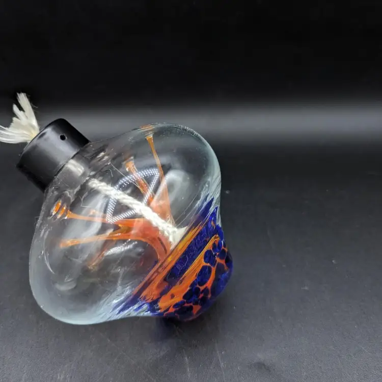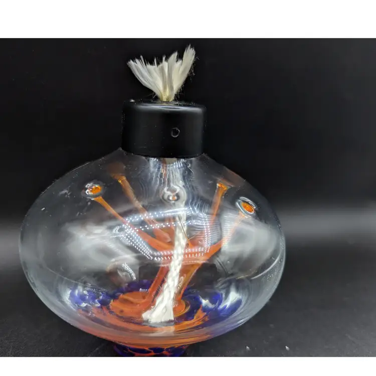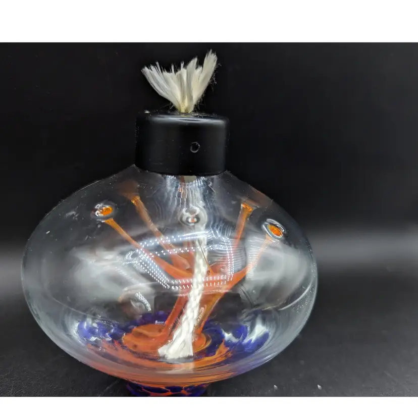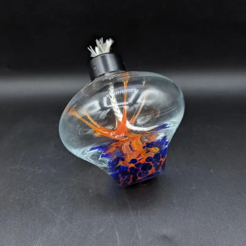 Beautiful hand blown oil lamp. Beautiful condition, no chips or cracks.