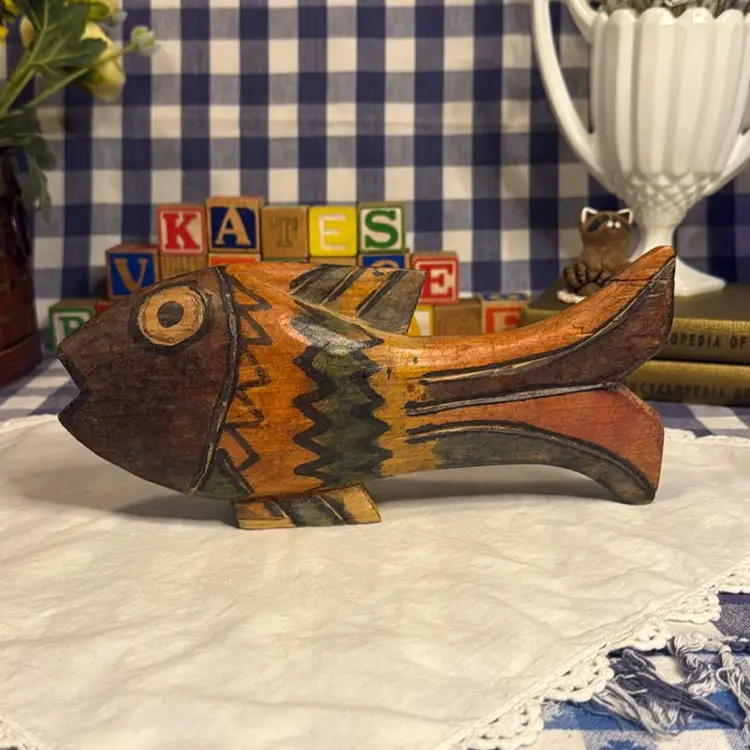 Hand-Carved & Hand-Painted Wooden Fish - 10”.