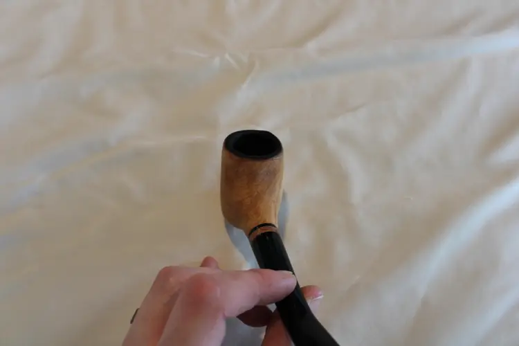 The inside of the smoke chamber is char finished to avoid any chemicals in the tobacco smoke, and the outside is finished with 2 coats of Tung oil and then buffed sealed with a beeswax coat.