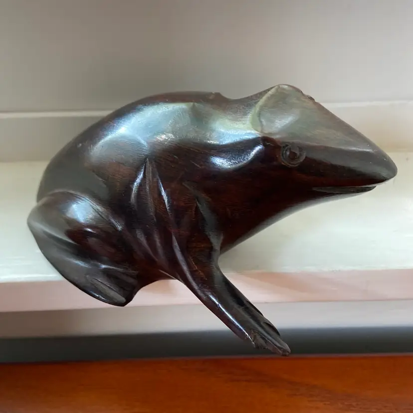 Vintage Iron wood carved Frog. Original piece which is unsigned. No condition issues. Measures 3” x 6”